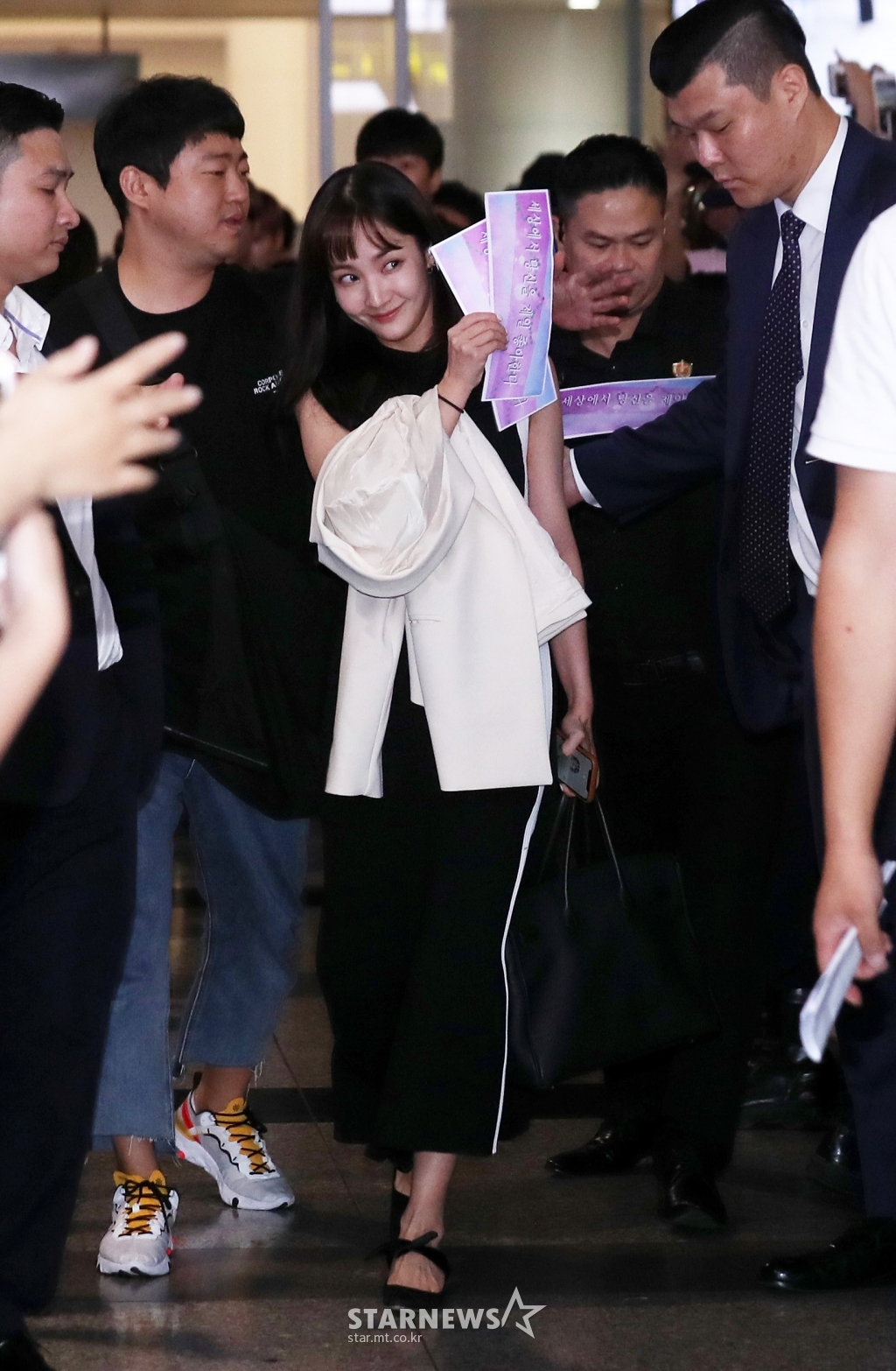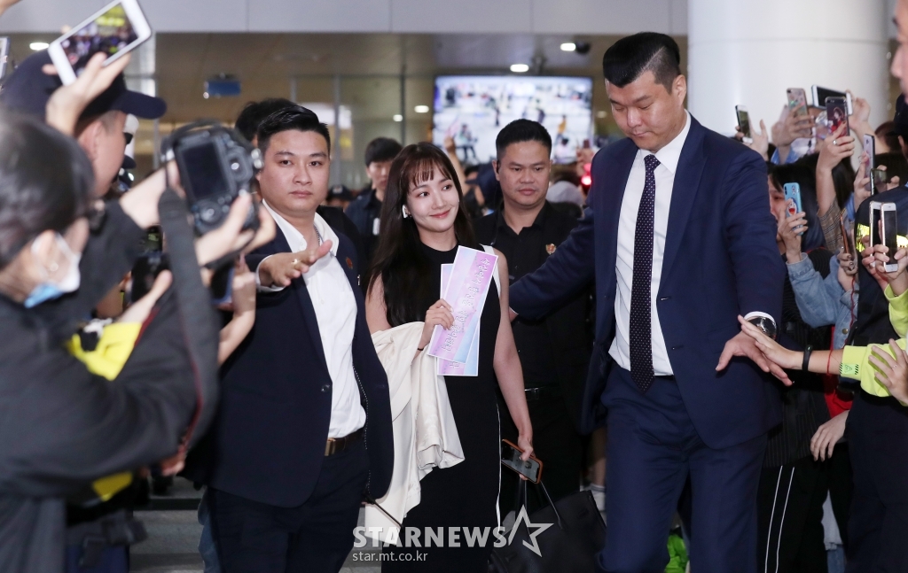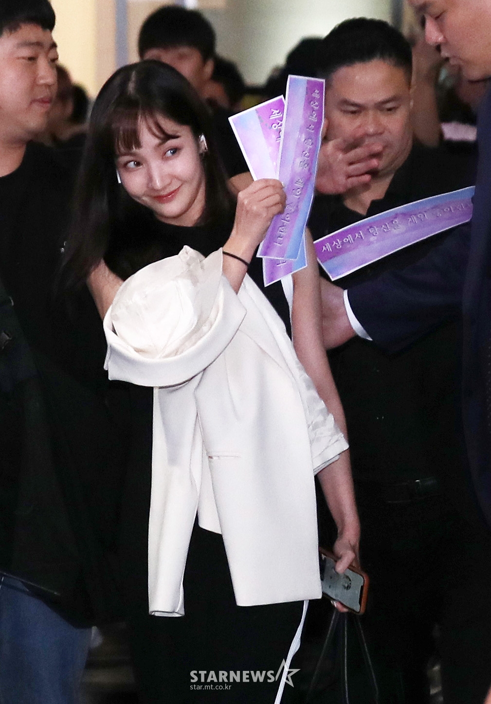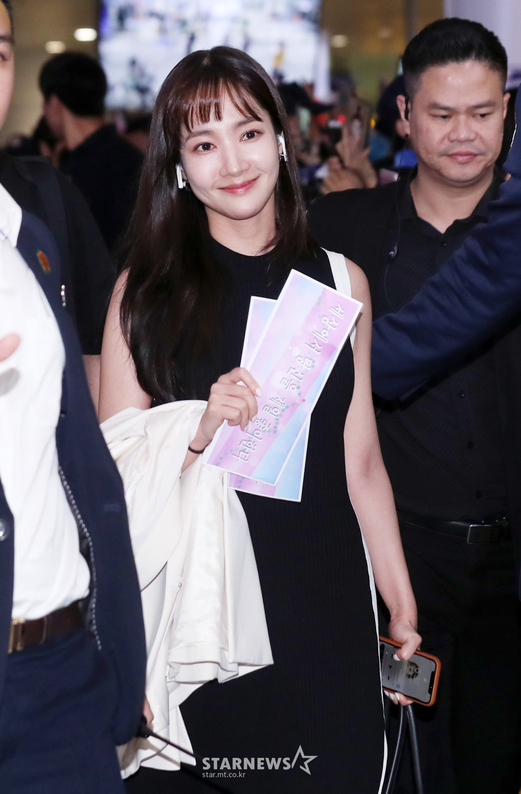 Cũng như nhiều ngôi sao khác, Park Min Young mặc trang phục đen để thể hiện sự tôn trọng với Goo Hara, cô gái trẻ đã qua đời ở tuổi 28 vào ngày hôm qua. Lọt vào ống kính của các phóng viên cũng như người hâm mộ địa phương, cô thể hiện sự chuyên nghiệp của một ngôi sao hàng đầu. Park Min Young nở nụ cười thân thiện, nhận lấy banner từ fan Việt Nam, trao đổi ánh nhìn ngọt ngào.