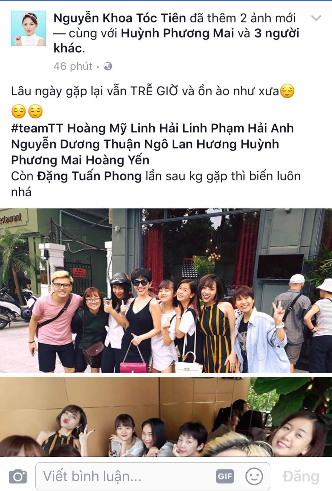 Mới đây, Tóc Tiên chia sẻ trên trang cá nhân hình ảnh cô cùng dàn học trò Giọng hát Việt 2017 đang đi ăn uống, cafe cùng nhau trông khá vui vẻ. Giọng ca Big Girl's Don't Cry hài hước: “Lâu ngày gặp lại vẫn trễ giờ và ồn ào như xưa”.