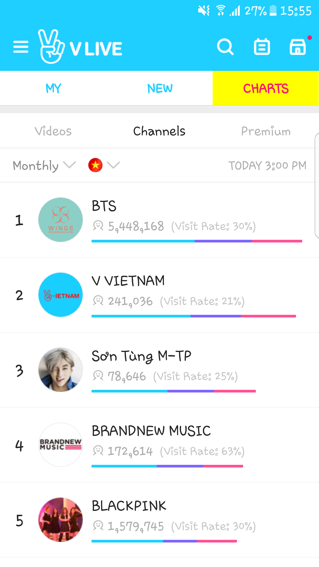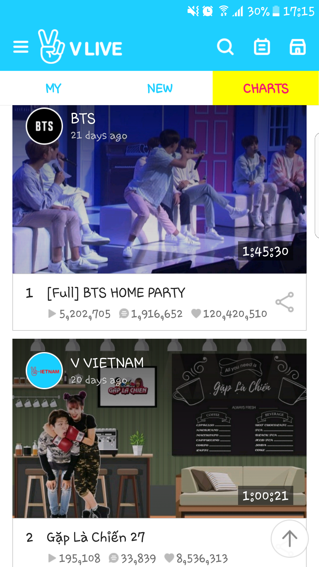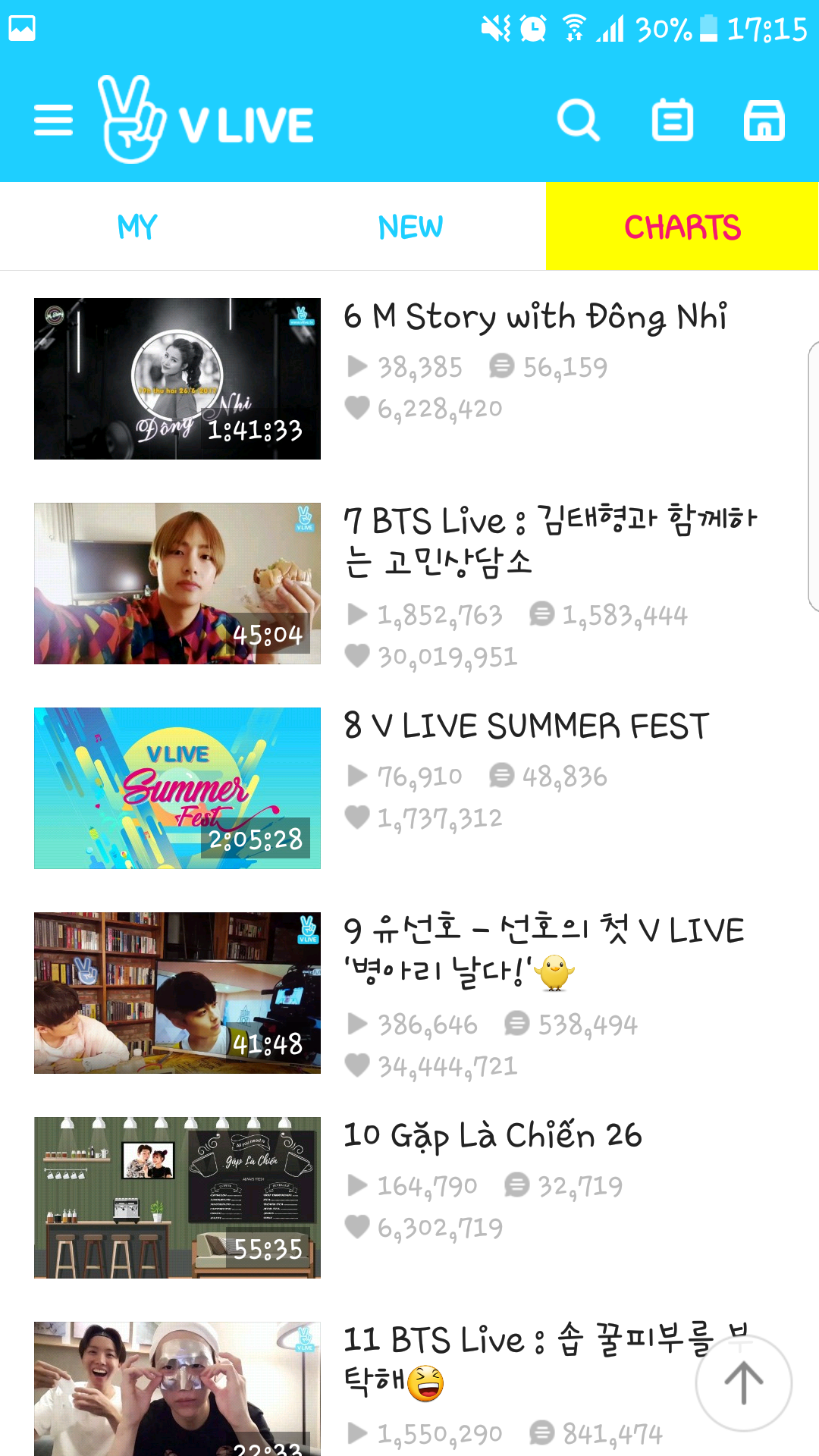 Theo BXH ở Việt Nam, video livestream được yêu thích nhất tháng 6 thuộc về BTS - Home Party. BTS cũng là nhóm nhạc liên tục duy trì vị trí đầu bảng của mình. Ở 4 vị trí tiếp theo nằm trong Top 5, có đến 3/4 vị trí thuộc về nghệ sĩ Việt Nam. Điều này cho thấy, người dùng V Live ở Việt Nam không chỉ có các fan Kpop và fandom của nghệ sĩ Việt cũng rất hùng mạnh.