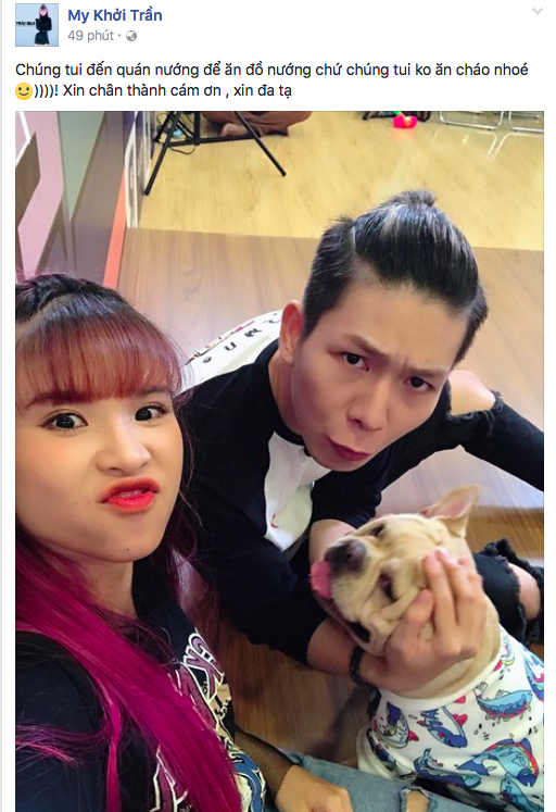 Khởi My khẳng định không bao giờ muốn thể hiện thoải mái ở nơi công cộng, đặc biệt là hôm đó còn có mẹ của cô cũng đi ăn cùng cả hai. Nữ ca sĩ tâm sự có lẽ cô sẽ không quay lại quán nướng đó ăn nữa và cũng hy vọng bạn nhân viên đã chia sẻ bức ảnh đó có thể lên trang cá nhân để “đính chính” thông tin chính xác.