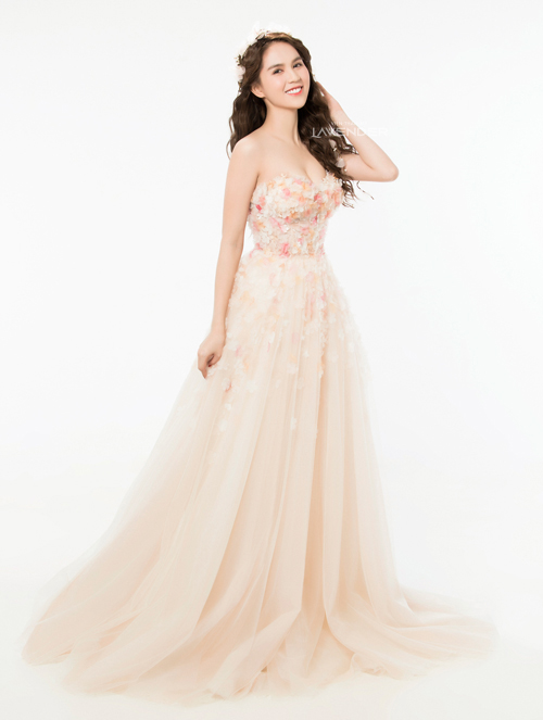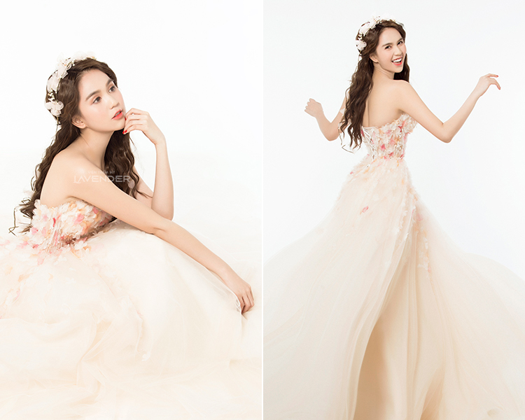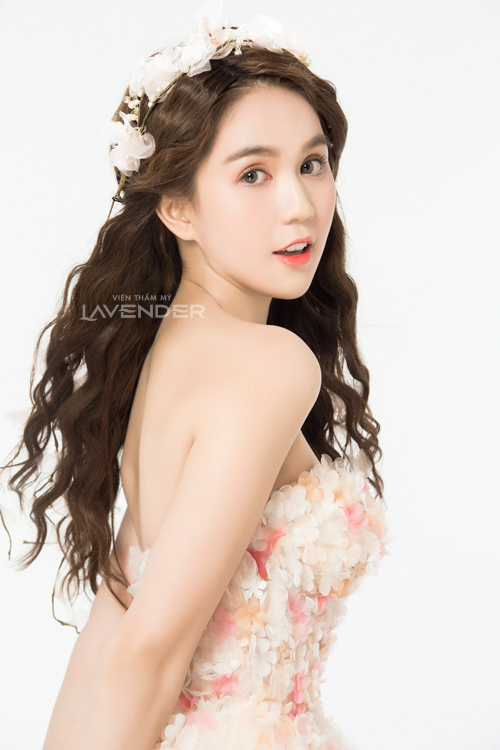 Sở hữu gương mặt baby nhất nhì showbiz và làn da trắng mướt mịn không đối thủ nên Ngọc Trinh vô cùng phù hợp với tạo hình nữ thần mùa xuân. Khó có thể tin cô đã xấp xỉ tuổi 30, nhan sắc dường như không đổi sau gần 10 năm vào showbiz.
