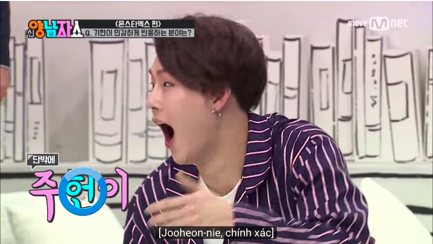 Jooheon há hốc mồm khi được Kihyun gọi tên.