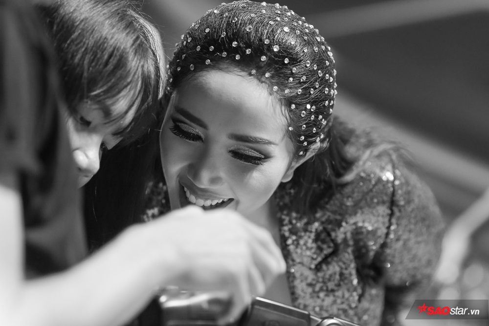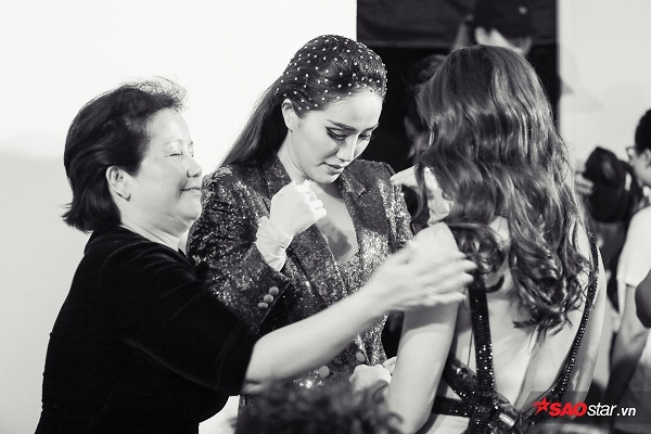 Mẹ Bảo Thy chăm sóc con gái, chỉnh sửa trang phục trong hậu trường.