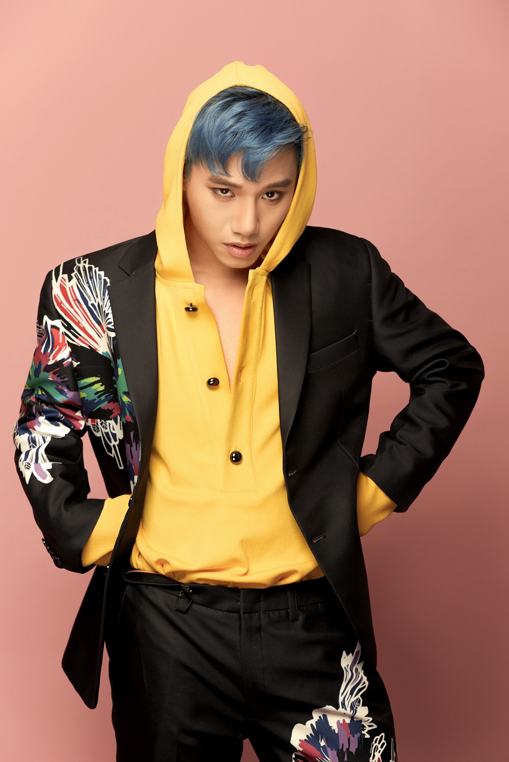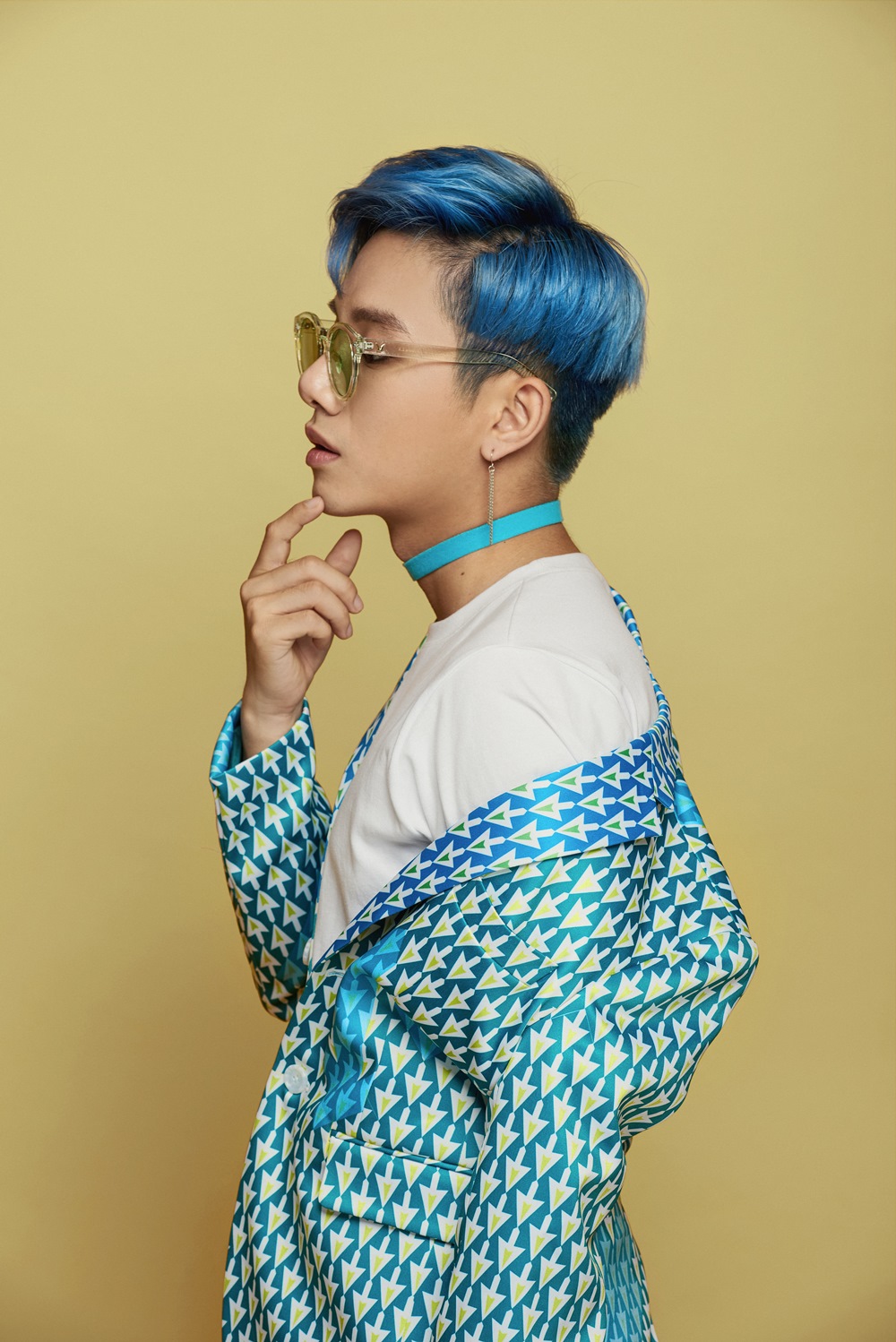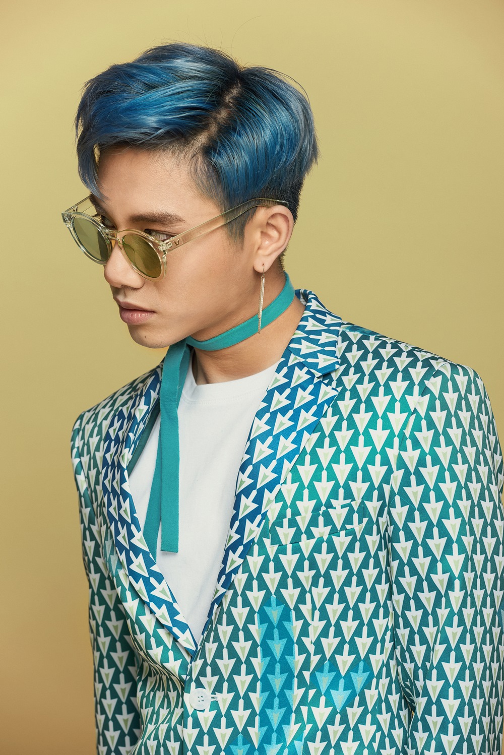 Mái tóc xanh nổi bật cũng là điểm gây chú ý của anh chàng so với những gương mặt khác.