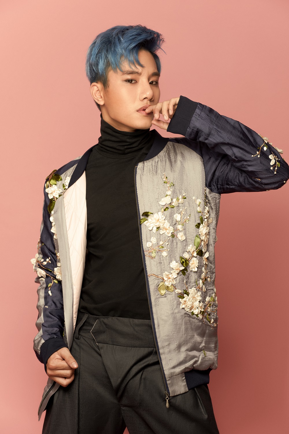 Trong bộ ảnh mới, Juun Đăng Dũng gây ấn tượng khi chọn những chiếc áo khoác bomber, vest họa tiết cầu kỳ đẹp mắt.
