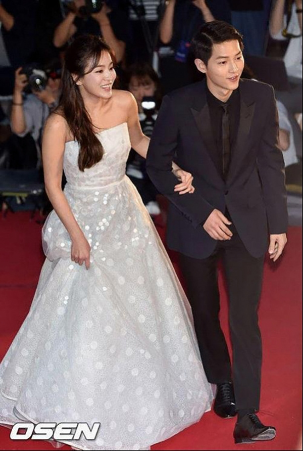 Dù đã mang giày cao gót nhưng Song Hye Kyo vẫn nhỏ bé khi bên cạnh Song Joong Ki.