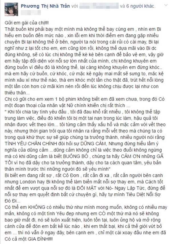 Bức “tâm thư” đầy xúc động của Nhã Phương gửi cho em gái đã dấy lên nghi vấn Nhã Phương đang “mượn” này để nói về chuyện tình cảm của mình với Trường Giang.