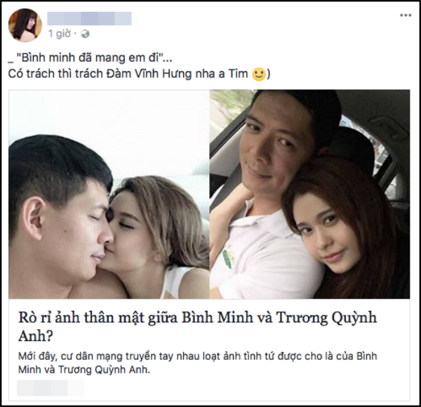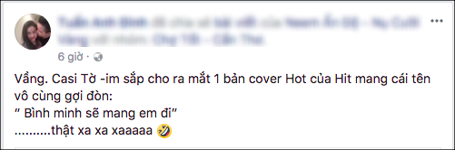 Đồng cảm với Tim trước sự việc, không ít người hâm mộ cũng lém lỉnh dùng ca khúc Bình minh sẽ mang em đi của Đàm Vĩnh Hưng để chia sẻ bức xúc của mình. Sự trùng khớp đặc biệt giữa ca khúc của “ông hoàng nhạc Việt” với tên gọi Bình Minh và sự việc khiến khán giả không khỏi bật cười.