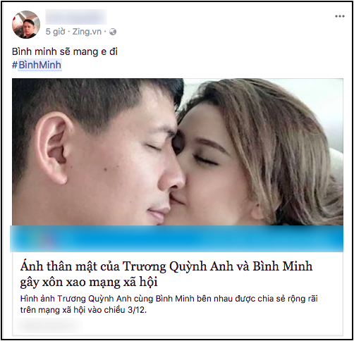 Trước loạt ảnh thân mật của Trương Quỳnh Anh - Bình Minh, người cho rằng cả hai có mối quan hệ mờ ám, kẻ lại bênh vực chỉ là loạt ảnh trên phim trường mà cả hai từng đóng chung. Điều đáng chú ý là trong phim, bộ đôi chỉ có cảnh ôm nhau chứ không hề quay phân đoạn tình tứ quá đà nào như loạt ảnh bị lộ khiến cư dân mạng càng thêm xôn xao, phẫn nộ.