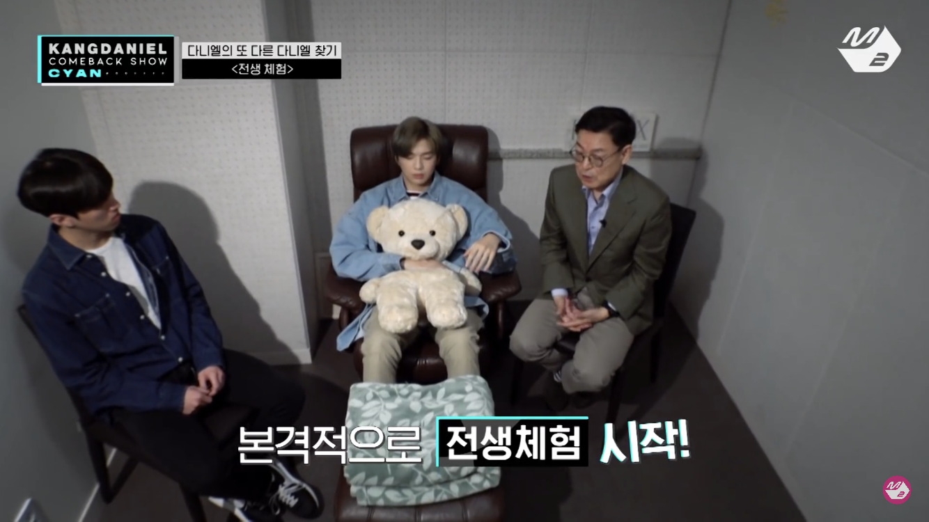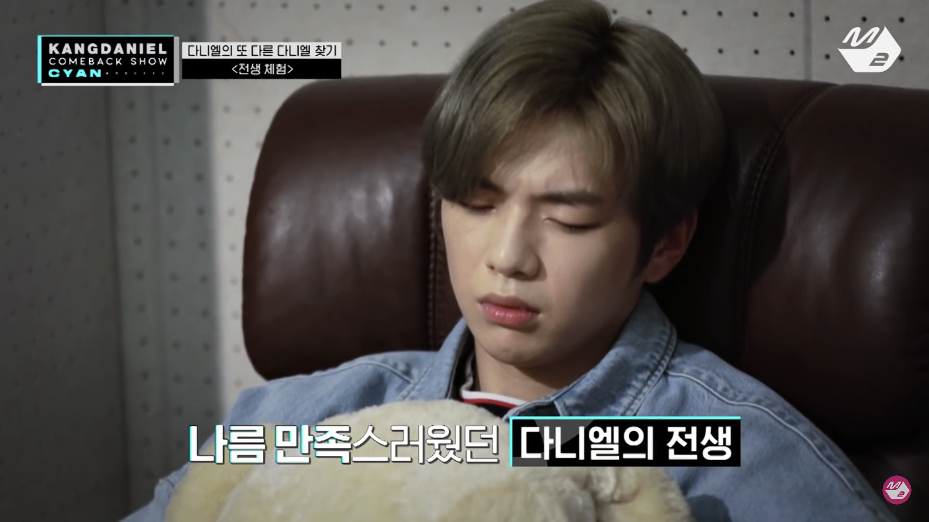 Trong một chương trình đặc biệt mang tên Kang Daniel Comeback Show - CYAN dành cho sự trở lại với sản phẩm âm nhạc mới, tiền kiếp của chàng “center quốc dân” Kang Daniel đã được tiết lộ. Cụ thể, trong tập phát sóng vào ngày 24/03 vừa qua, cựu thành viên Wanna One đã gặp một nhà thôi miên để khám phá, tìm hiểu về kiếp trước của mình.