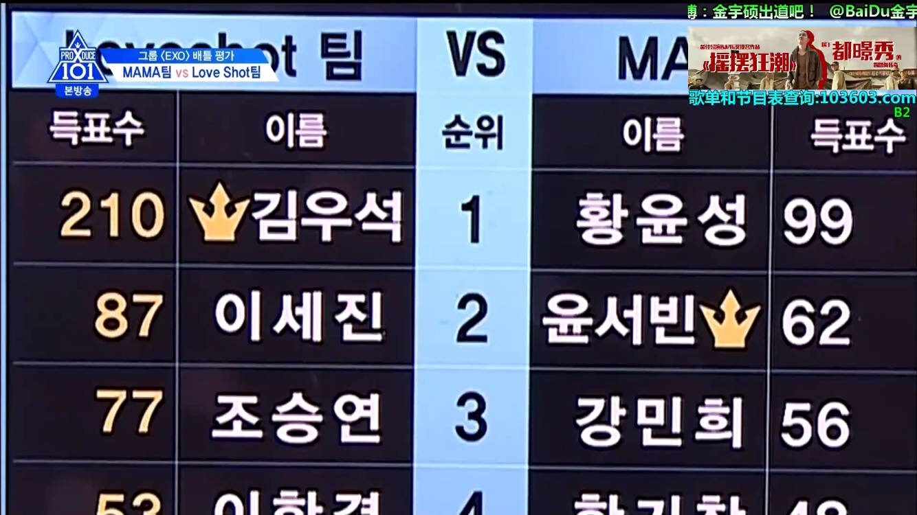 Tập phim tuần này tiết lộ toàn bộ trận chiến giữa hai đội trình diễn ca khúc của EXO là Love Shot và MAMA. Kết quả là bình chọn của khán giả tại trường quay, Kim Woo Seok của đội Love Shot đã giành vị trí thứ nhất với 210 phiếu, trong khi Hwang Yun Seong của đội MAMA nhận được 99 phiếu.