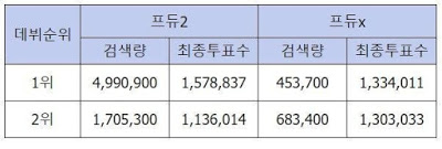 Gần đây các dữ liệu đã được công bố cho thấy trung bình trong một tháng hai cái tên Kim Yohan và Kim Wooseok trở thành từ khóa tìm kiếm bao nhiêu lần.