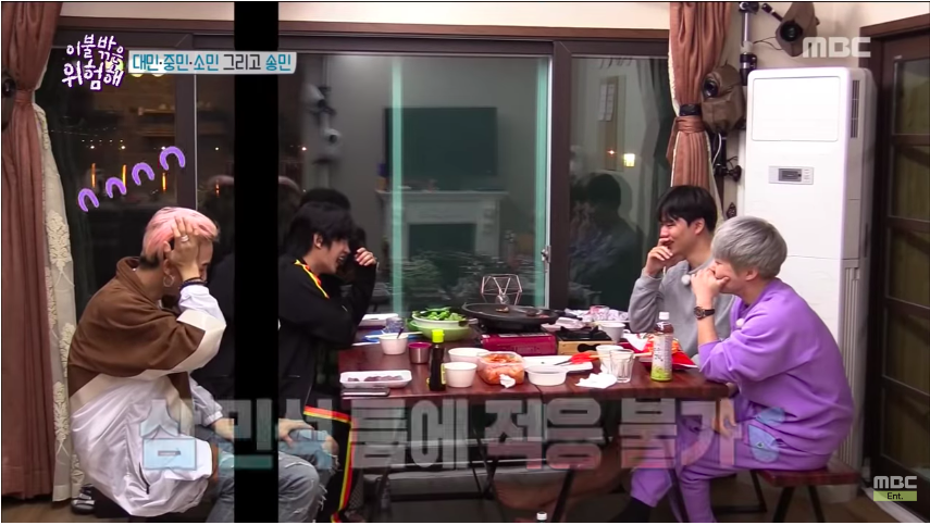 Vừa qua, Mino (WINNER) đã có chuyến ghé thăm bất ngờ trong chuyến du lịch của các thành viên Dangerous outside of Blanket. Dù có phần ngượng ngùng nhưng với sự hài hước của Xiumin (EXO), cả 4 chàng trai đã có những tràng cười đầy sảng khoái khi thưởng thức bữa tối cùng nhau.