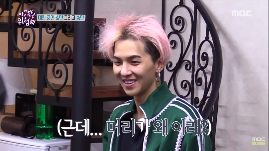 Quả đầu điện giật dựng đứng đập tan hình ảnh mỹ nam sau khi tắm của Mino đã khiến các thành viên còn lại vô cùng thích thú.