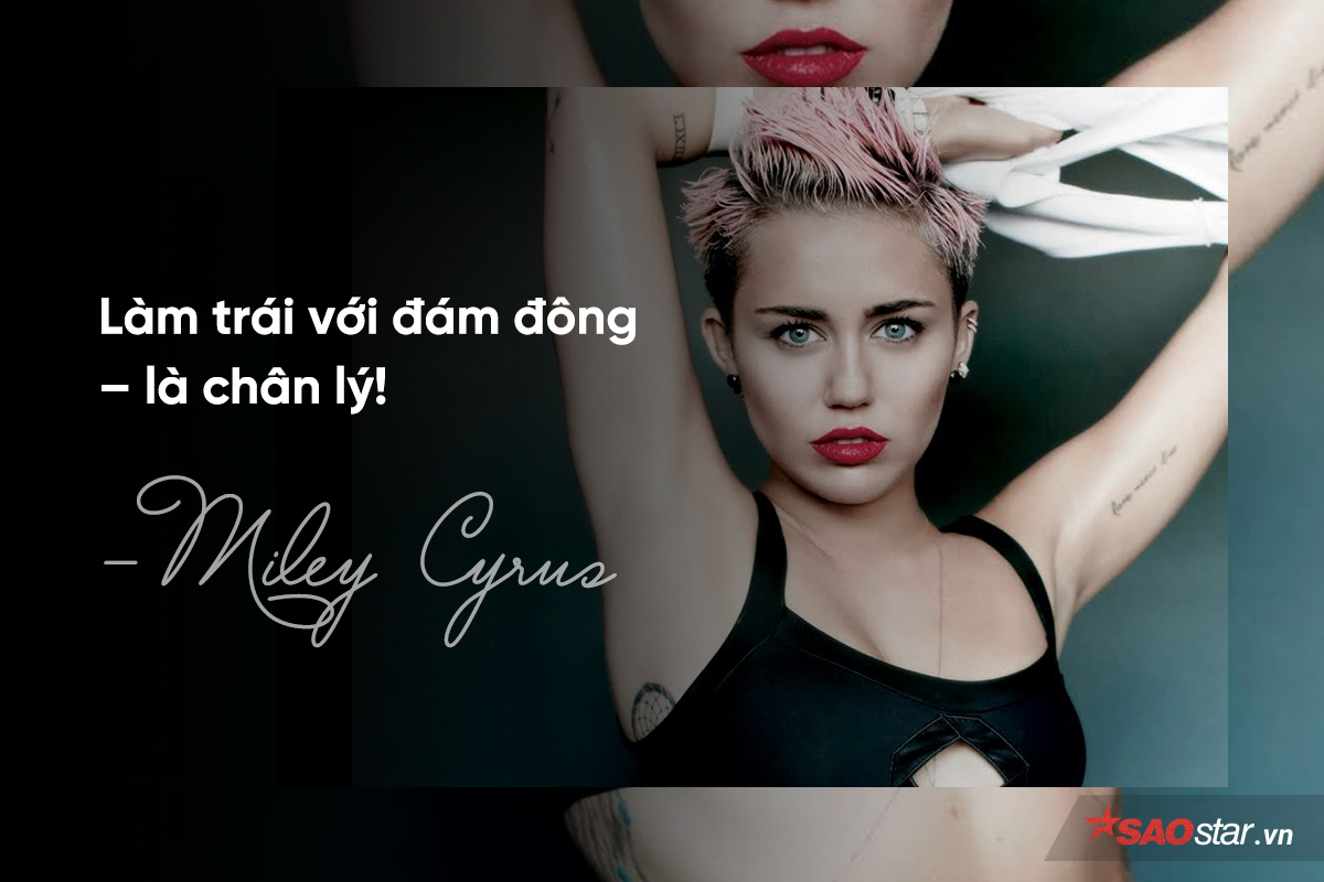 Cùng lúc đó là Miley với Liam - những kẻ cũng rất giỏi trong trò “vờn bắt”, phủ sóng khắp mặt báo. Miley sau hủy hôn, đã “lột xác” hoàn toàn, để trở thành “gái hư Hollywood”, để “giết chết” Hannah Montana và chứng minh cho cả thế giới thấy: Miley là như thế, là cô gái sống với tất cả bản năng, yêu thích sự tự do dưới mọi hình thức: tự do ngôn luận, tự do lựa chọn kiểu tóc, quần áo, phong cách, tự do yêu đương mà không cần sự-hài-lòng của dư luận.