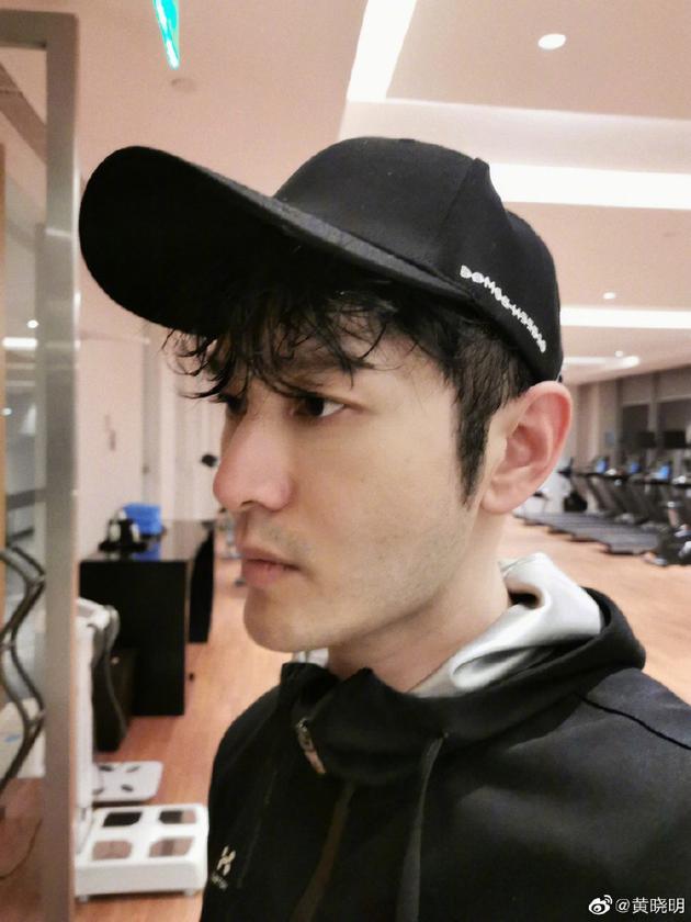 Trong hình, Huỳnh Hiểu Minh trong phòng gym với trang phục thể thao và đội nón lưỡi trai màu đen. Có thể được chụp sau khi vận động xong nên đầu tóc có phần ướt, vẻ mặt có chút “ngốc ngốc” nhưng vẫn còn khá điển trai. Hình còn lại là phần trò chuyện của Huỳnh Hiểu Minh và đồng nghiệp.
