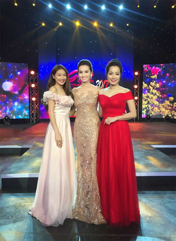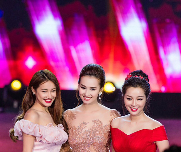 Lã Thanh Huyền quyến rũ khoe đường cong cơ thể, còn Nhã Phương và Minh Hương lại để lộ vai trần gợi cảm.