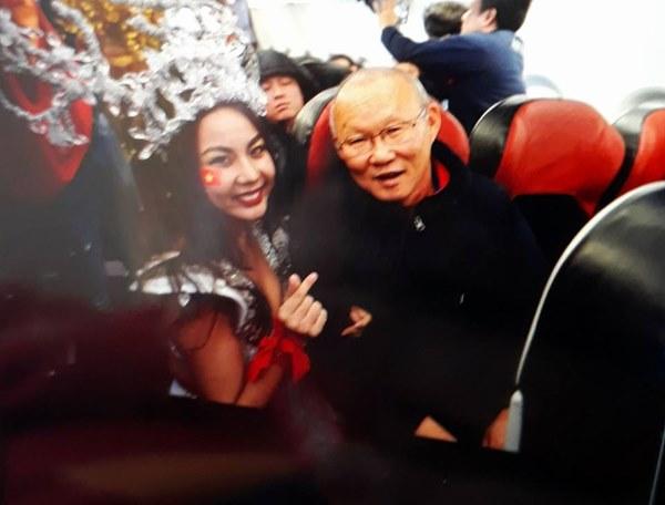 Lại Thanh Hương kể thêm, sau khi trình diễn, lúc ra về cô chỉ xin chụp hình duy nhất với HLV Park Hang Seo. Người đẹp khẳng định đã chủ động ngồi thấp, không làm bất cứ hành động gì bất kính.