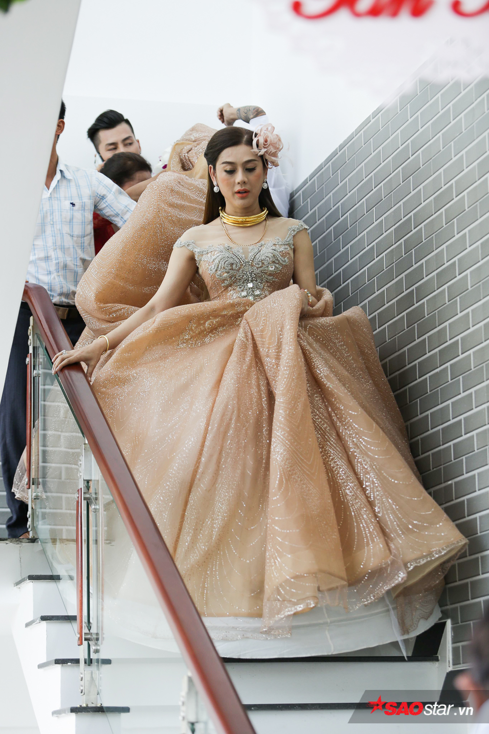 Sau khi làm lễ rước dâu tại nhà riêng cô dâu (Quận 9, TP.HCM) và vái lại bàn thờ gia tiên ở nhà chồng Long Hải (Vũng Tàu), Lâm Khánh Chi và ông xã Phi Hùng tranh thủ di chuyển ra nhà hàng tiệc cưới để đón khách và chuẩn bị làm lễ cưới.