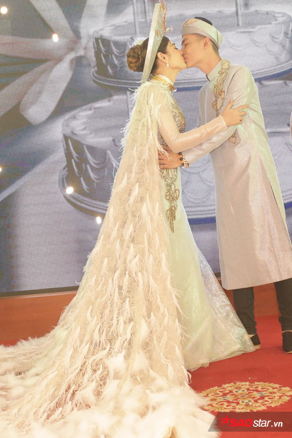 Khoảnh khắc Lâm Khánh Chi khóa môi ông xã Phi Hùng nhận được sự hưởng ứng nhiệt tình từ phía người thân và bạn bè.