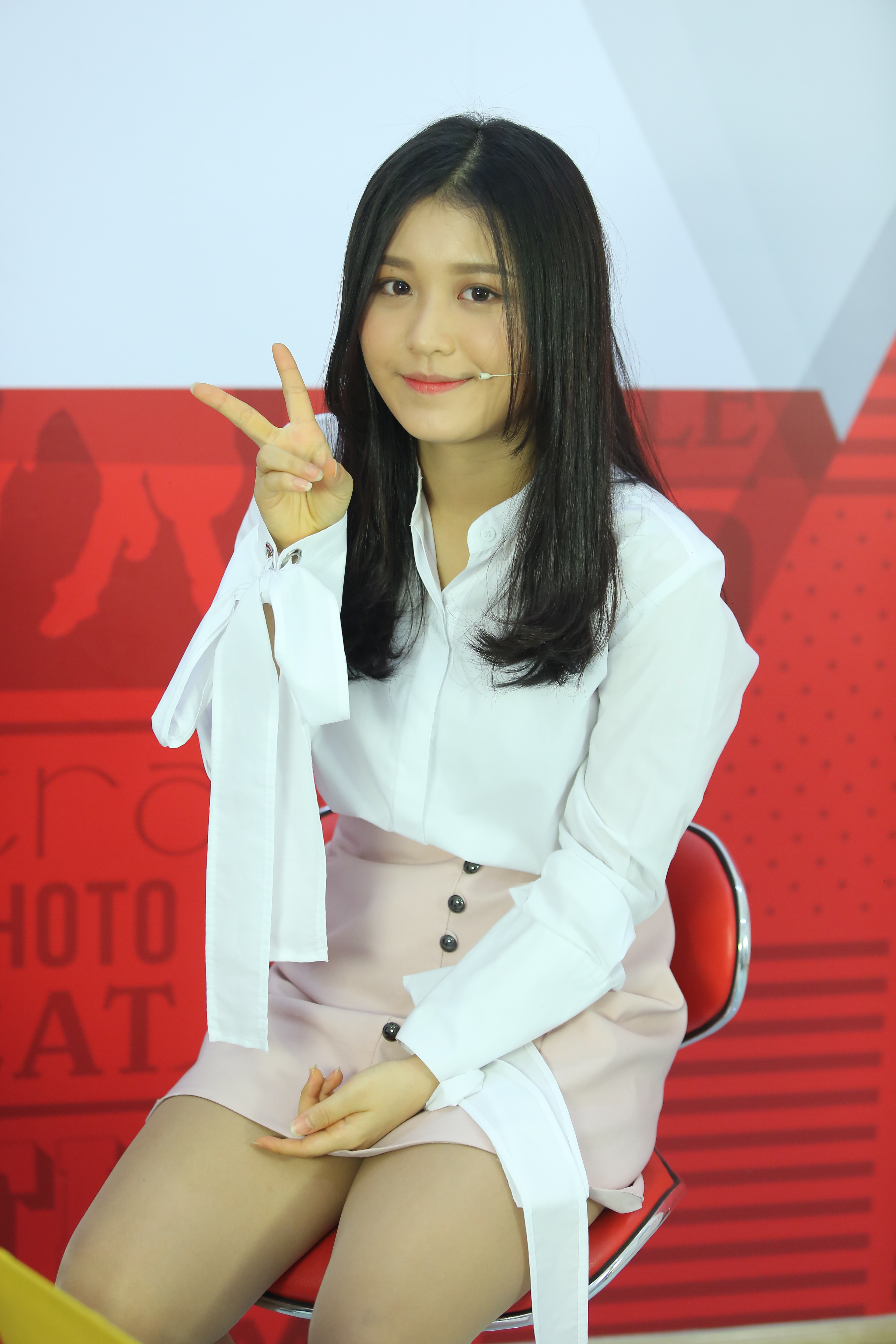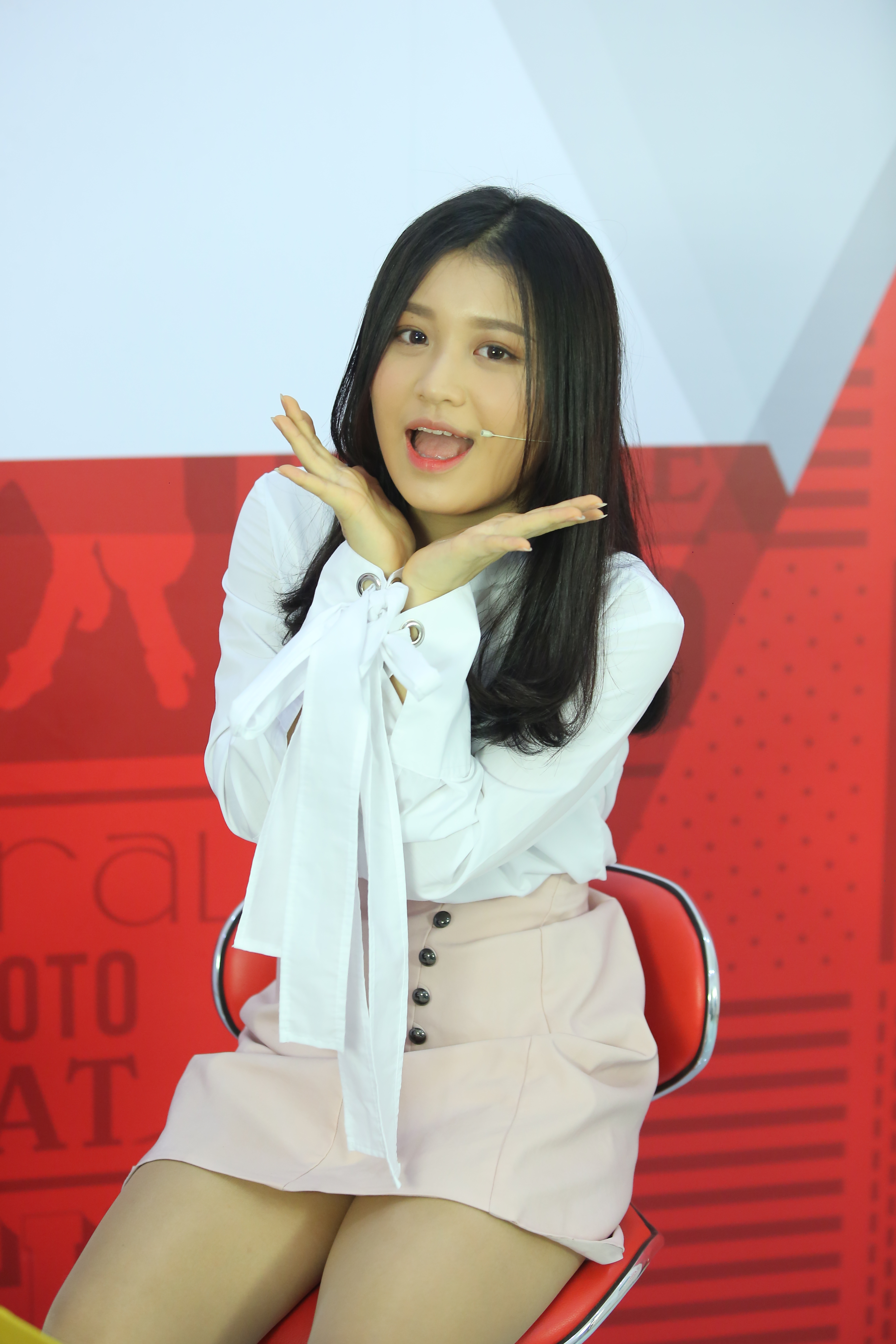Sara còn hướng dẫn MC làm theo động tác kiyomi dễ thương.