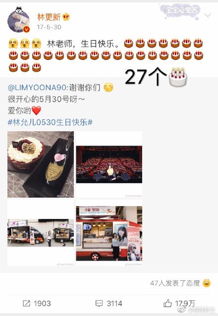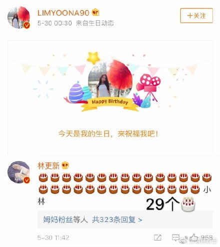 Từ năm sinh nhật 26 tuổi của Yoona, năm nào Lâm Canh Tân cũng tag tên Yoona kèm 26 cái icon bánh kem, rồi 27 cái rồi 29 cái.