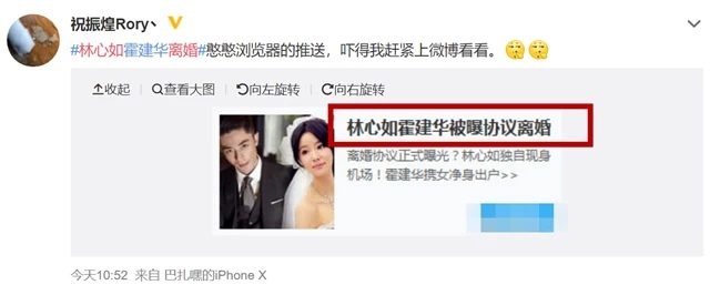 Gần đây, trên Weibo đang lan truyền tin tức vạch trần Hoắc Kiến Hoa đã ký giấy ly hôn với Lâm Tâm Như, còn dẫn con dọn ra khỏi nhà, phân chia tài sản đã hoàn thành, giải quyết dứt điểm. Một số cư dân mạng đăng tải trên diễn đàn với nội dung cho rằng cả hai đã hoàn tất xong thủ tục “đường ai nấy đi”. Nguồn tin từ những bài viết này được chú thích rằng lấy tin trong giới giải trí. Bài đăng này đã gây ra những cuộc tranh luận nảy lửa trong một khoảng thời gian ngắn.