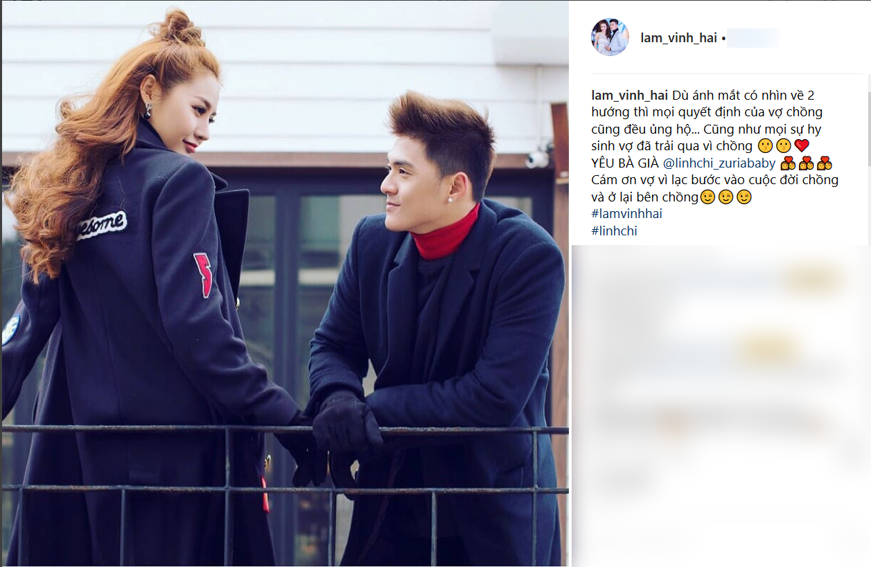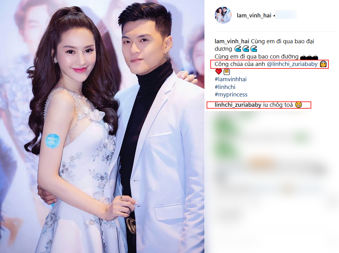 Trên trang cá nhân của cả hai liên tục đăng tải những thông tin về nhau, với một tần suất là rất thường xuyên. Thậm chí, story nổi bật trên trang chính thức của Lâm Vinh Hải và Linh Chi, hầu như đều là những kỉ niệm của cả hai dành cho nhau.