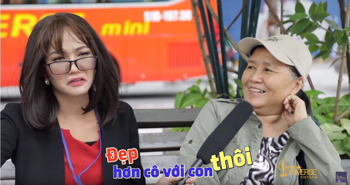 Và Hen cho các vị khách xem hình của mình trên điện thoại, để hỏi họ những đánh giá về cô Hoa hậu đại diện Việt Nam này. Thân phận “điệp viên” của Hen bị… bại lộ khi vị khách đầu tiên nhìn hình ngay lập tức nhận ra người phỏng vấn mình là Hen - “Con nè chứ ai!”.