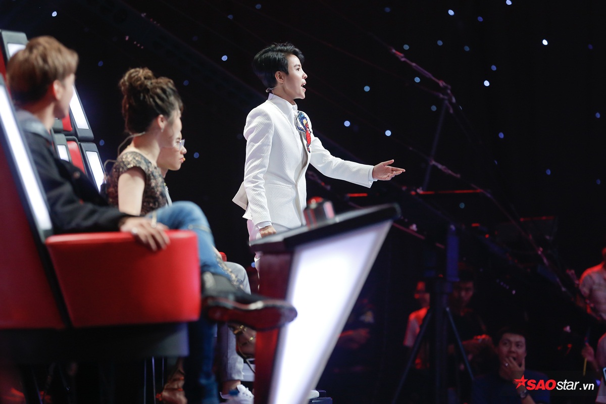 Với “cậu bé ả đào” này, HLV Vũ Cát Tường không phải tốn nhiều sức như những thí sinh khác. Chỉ bằng 2 câu hát đã “thu phục” thêm cho đội mình một thí sinh tiềm năng.