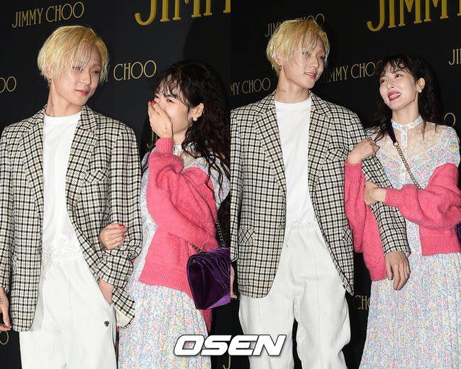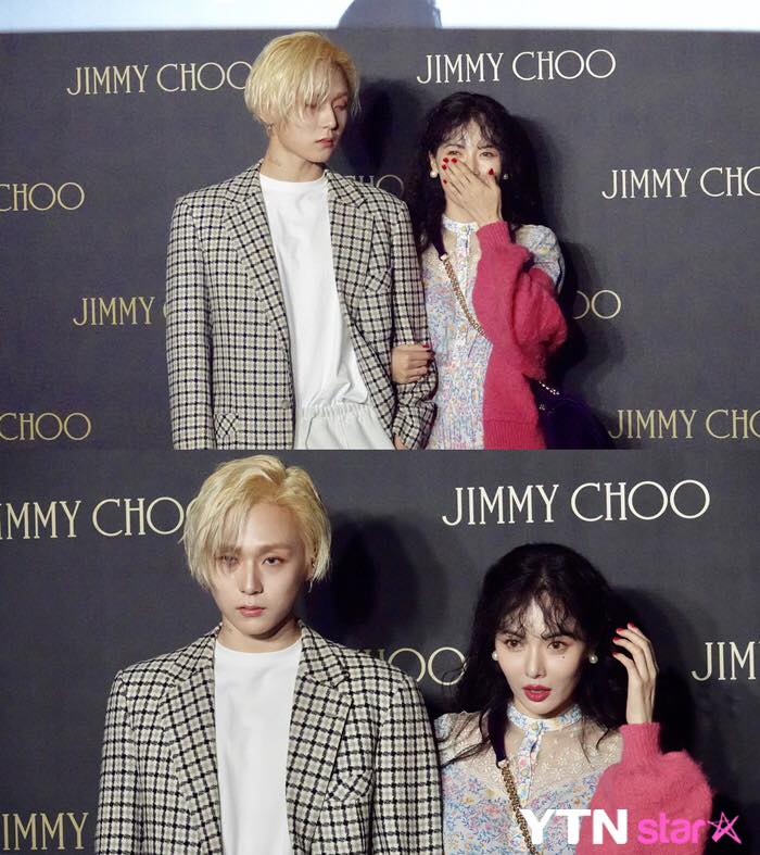 Mới đây, cả hai lần đầu xuất hiện cùng nhau trước công chúng sau khi công khai hẹn hò. Những bức ảnh là những khoảnh khắc nữ ca sĩ Hyuna thẹn thùng bên bạn trai ở sự kiện của Jimmy Choo tại Gangnam.