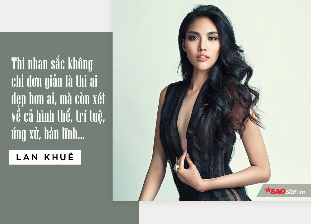 - Từng chiến thắng Hoa khôi áo dài 2014, giành được cơ hội “chinh chiến” trên đấu trường quốc tế, Lan Khuê hiểu được những gì một cuộc thi nhan sắc mang đến cho bản thân mỗi thí sinh tham dự chương trình. Hoa hậu Hoàn vũ Việt Nam năm nay cũng vậy, dù có là THTT hay không vẫn không thể thiếu những bài học, thử thách. Đó là thước đo kinh nghiệm, cũng là thành quả để ê-kíp có thể đánh giá, chấm điểm qua từng chặng của chương trình.