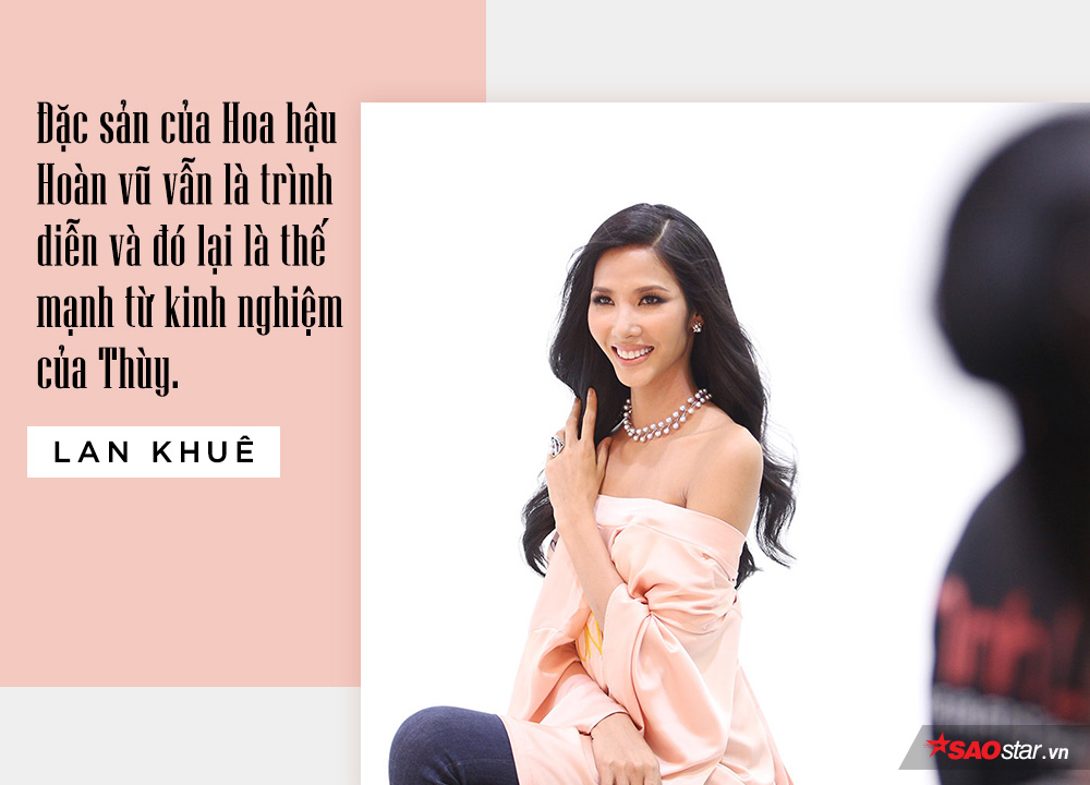 - Nếu như ngày xưa, một cô gái có phần thể hiện xuất sắc, gây ấn tượng ngay khi xuất hiện chắc chắn sẽ lọt top cao thì bây giờ đã có sự thay đổi, người đạt được danh hiệu Hoa hậu vẫn phải đảm bảo 50/50 giữa trình diễn và khả năng ứng xử. Nhưng bản chất thì không thể thay đổi, đặc sản của Hoa hậu Hoàn vũ vẫn là trình diễn và đó lại là thế mạnh từ kinh nghiệm của Thùy.