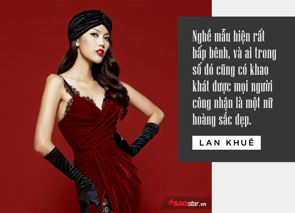- Ở thời điểm hiện tại, khá nhiều những người mẫu tìm kiếm cơ hội tại những chương trình THTT hay các cuộc thi sắc đẹp. Theo Lan Khuê, phải chăng sự bấp bênh của nghề mẫu khiến cho các cô gái phải tìm đến các cuộc thi nhan sắc để tìm kiếm chỗ đứng cho mình?