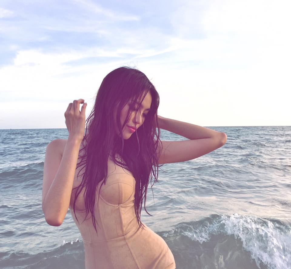 Lan Khuê tự tin khoe đường cong trước biển.