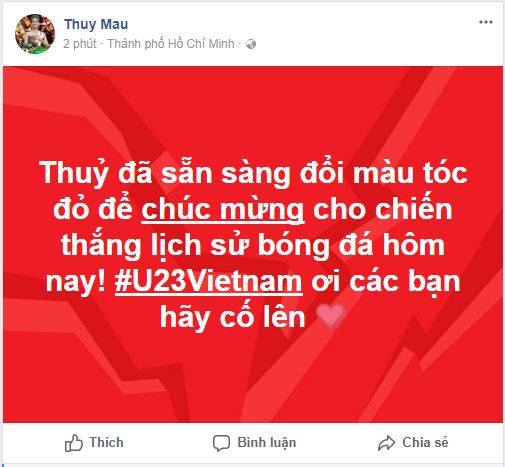 Mâu Thuỷ khẳng định sẽ nhuộm tóc đỏ nếu U23 Việt Nam vô địch.