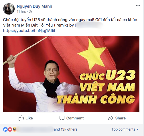 Duy Mạnh đăng tải ca khúc cổ vũ đội tuyển U23 Việt Nam.