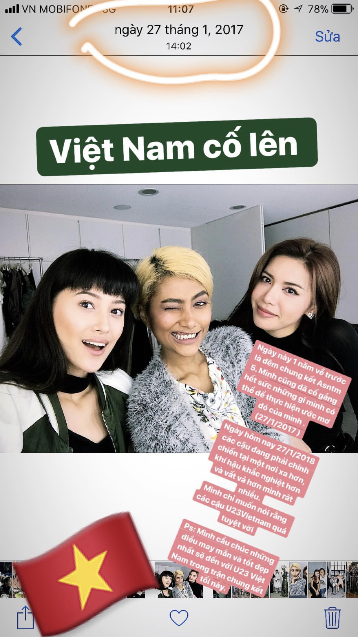Minh Tú chia sẻ bài viết cổ vũ U23 Việt Nam trên Instagram Story.