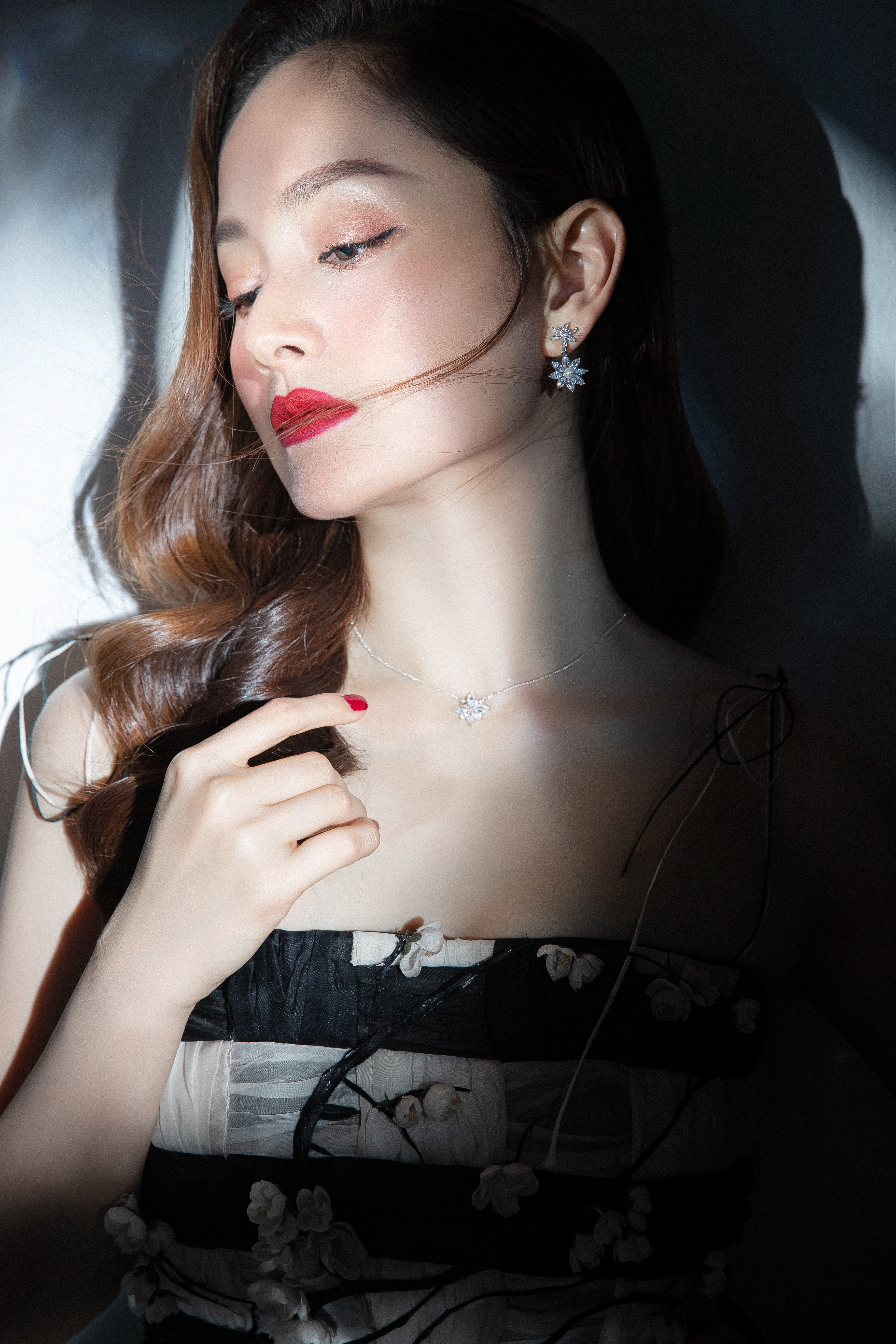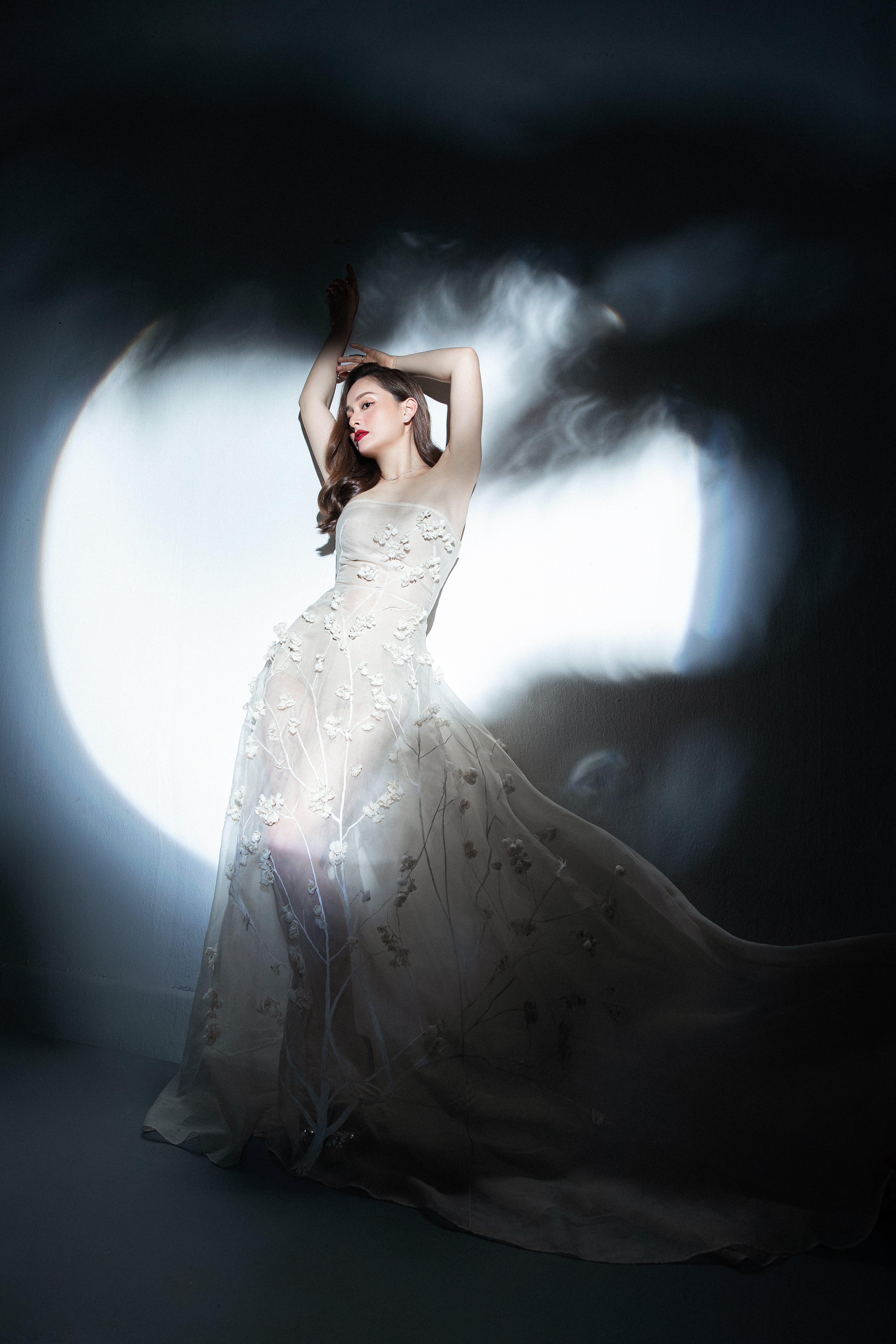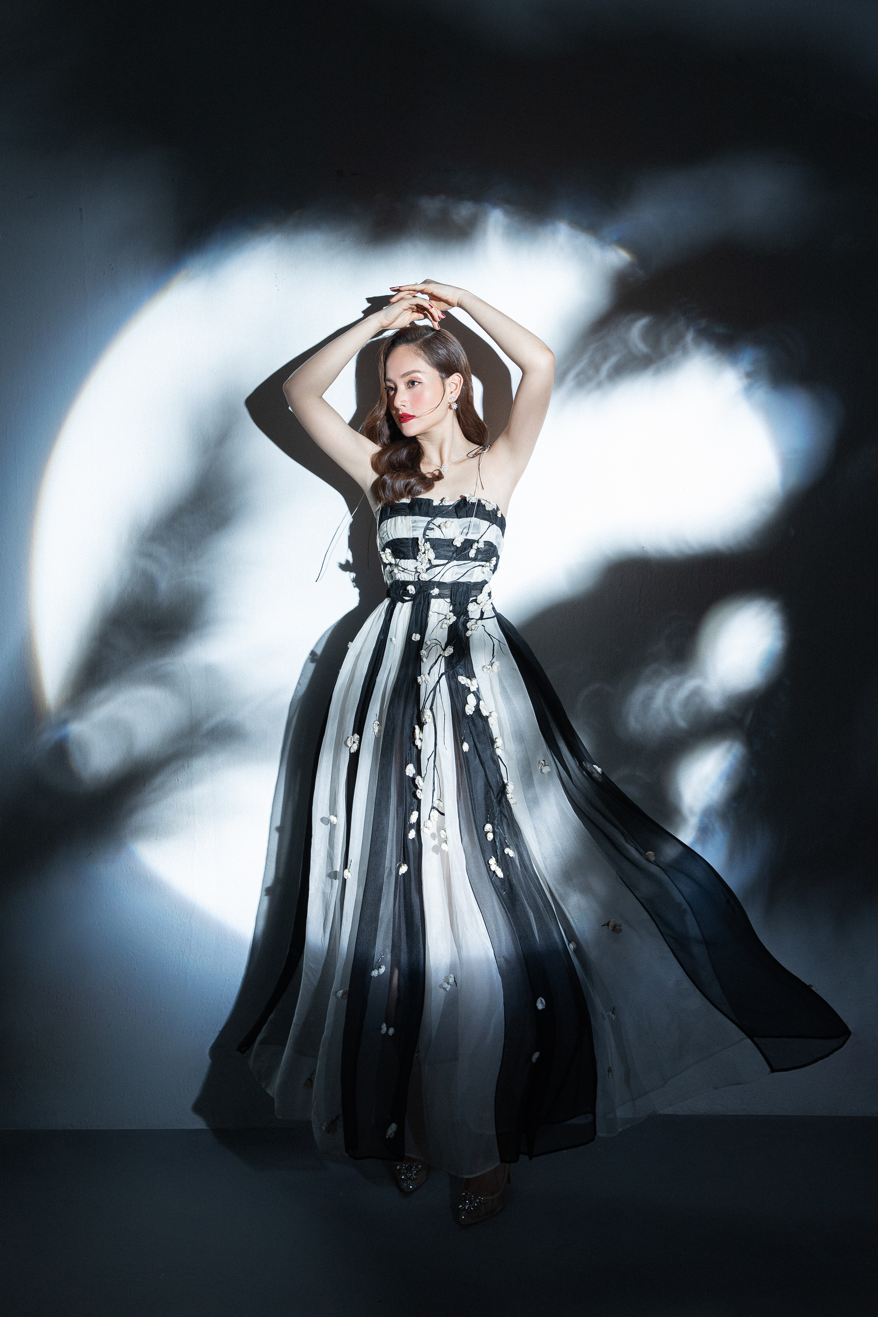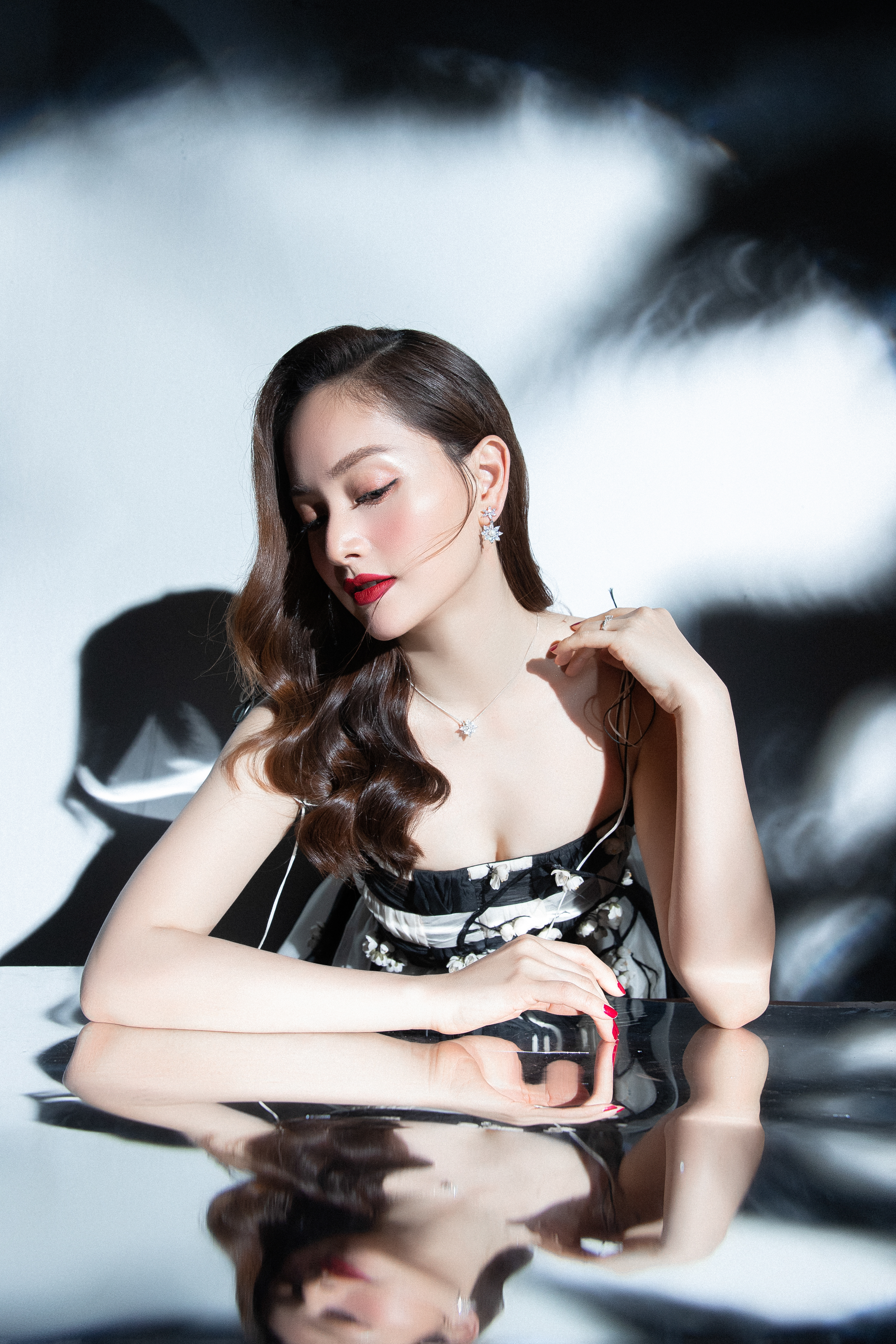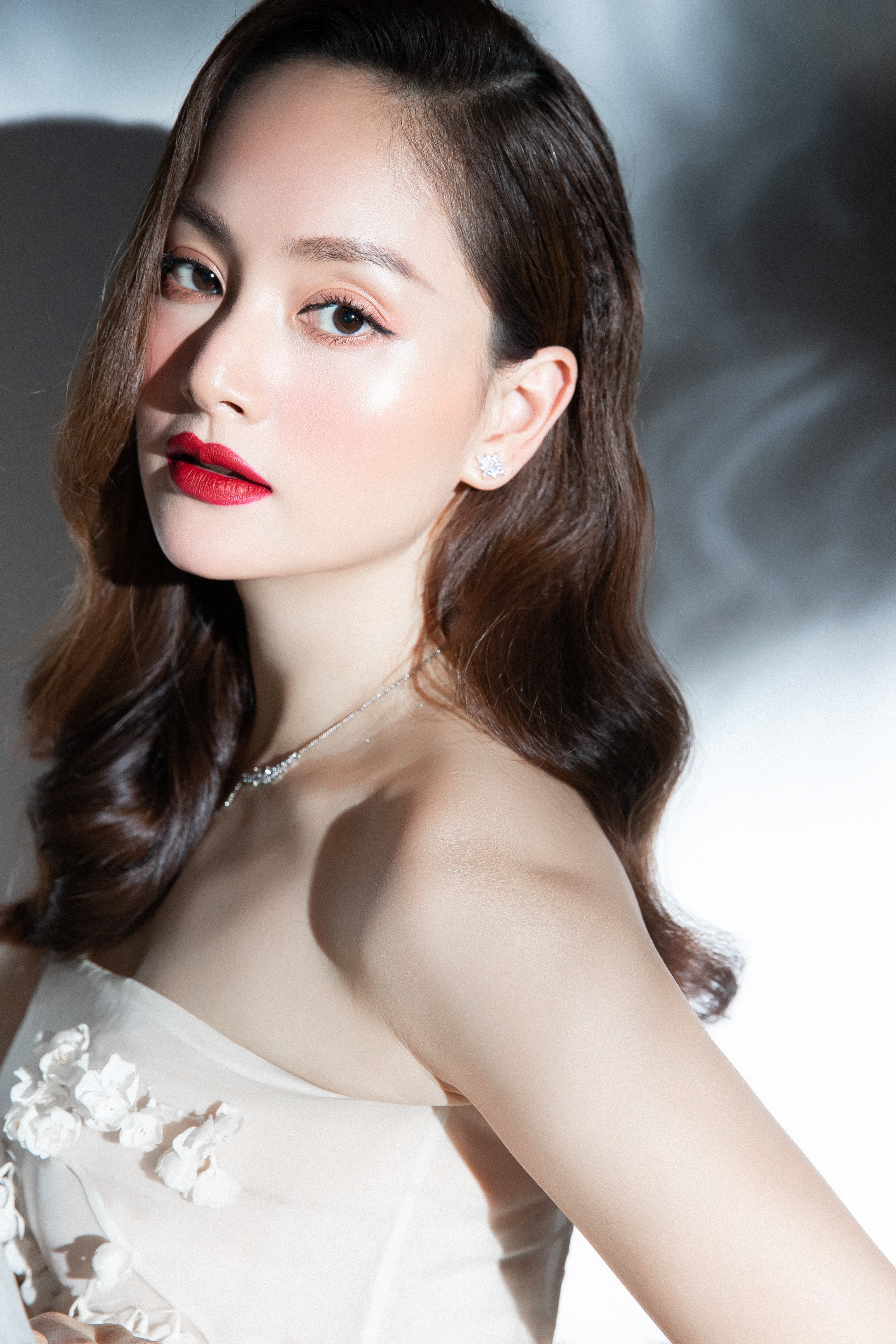Trong bộ ảnh, Lan Phương diện những thiết kế được “đo ni đóng giày” cho mình. 2 bộ váy với chất liệu voan mỏng mang màu sắc trang nhã, đính kết tinh xảo và khoe một cách khéo léo những điểm mạnh về đường cong cơ thể. Để tạo sự đồng bộ về hình ảnh, diễn viên 8x lựa chọn lối make up nhấn vào môi cùng kiểu tóc uốn sóng kiểu cổ điển.