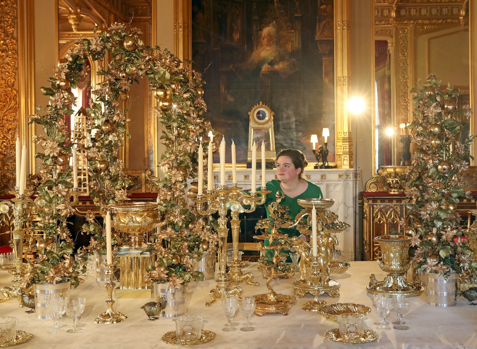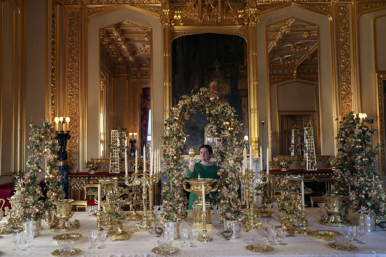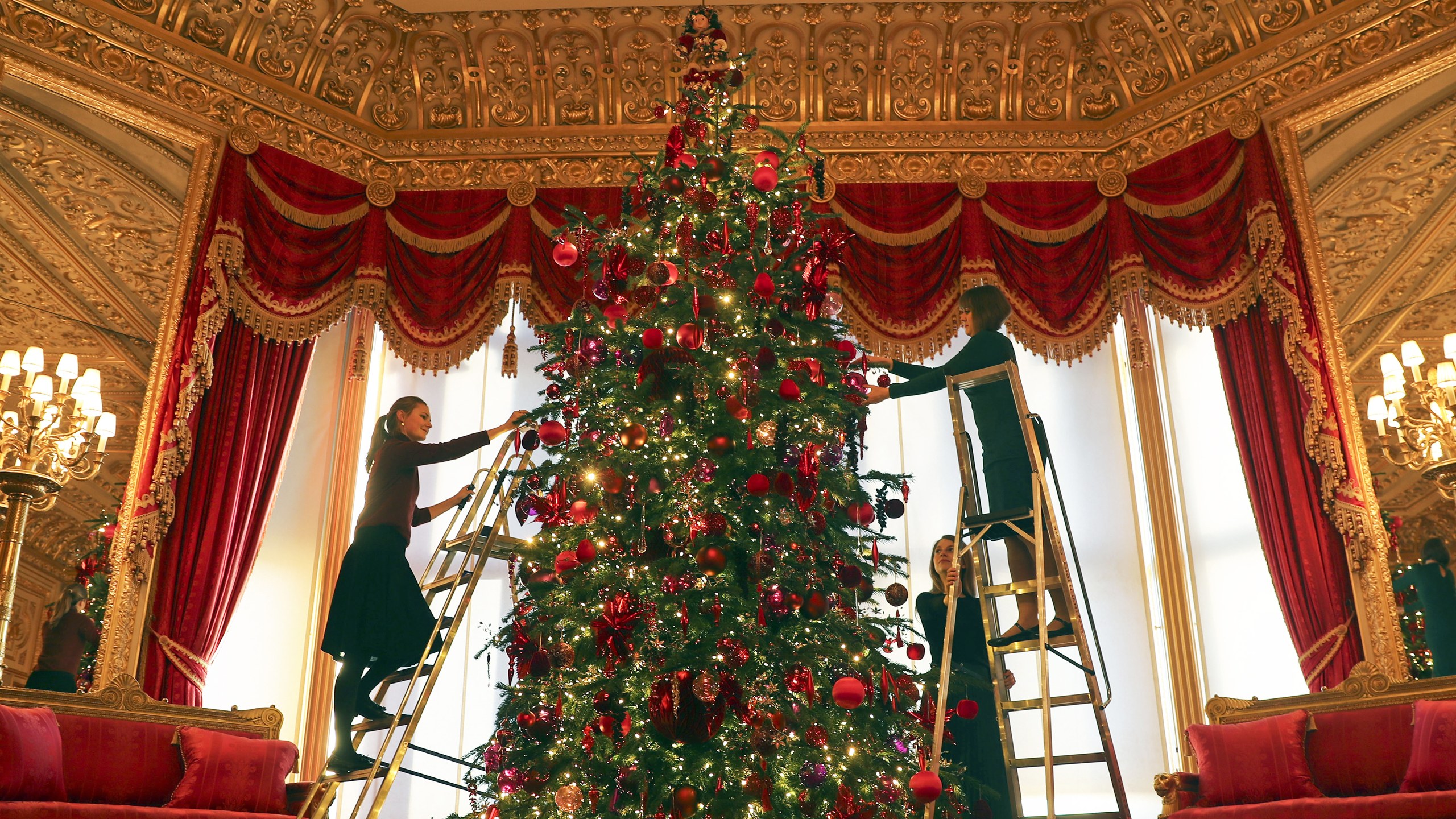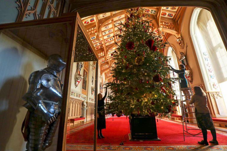 Các nhân viên của lâu đài Windsor bắt đầu bận rộn trang trí. Theo truyền thống của hoàng gia, một cây cao 15 feet (4,5 mét) sẽ được đặt ở cửa sổ Phòng Vẽ Crimson, thêm một cây 20 feet (6 mét) đặt ở Hội trường St. George (Đây chính là nơi hoàng tử Harry và Meghan Markle lần đầu tiên giới thiệu em bé Archie với thế giới).