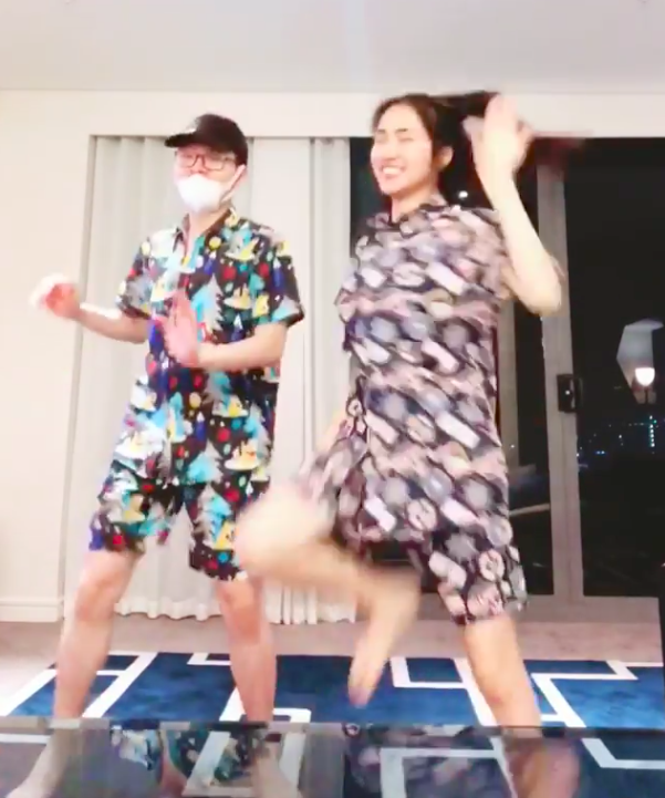 Hoà Minzy cột tóc hai bên, Đức Phúc bịt khẩu trang kín mít nhảy nhót tưng bừng lúc nửa đêm.