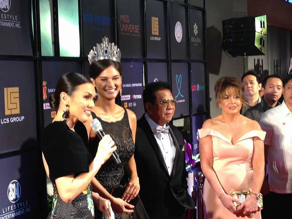 Tối 16/1, Lệ Hằng cùng các người đẹp Miss Universe 2017 đã cùng nhau tham gia bữa tiệc chào mừng thí sinh tham dự cuộc thi tại Manila (Philippines). Đặc biệt, trong đêm tiệc còn có sự góp mặt của Hoa hậu Hoàn vũ Thế giới Pia Wurtzbach, cô diện bộ đầm đen gợi cảm, gương mặt trang điểm nhẹ nhàng, thu hút mọi sự chú ý.