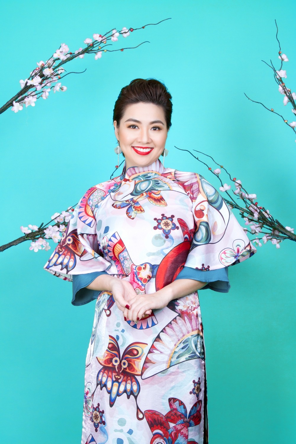 Cô chọn những mẫu áo dài sặc sỡ để hợp với không khí ngày Xuân.