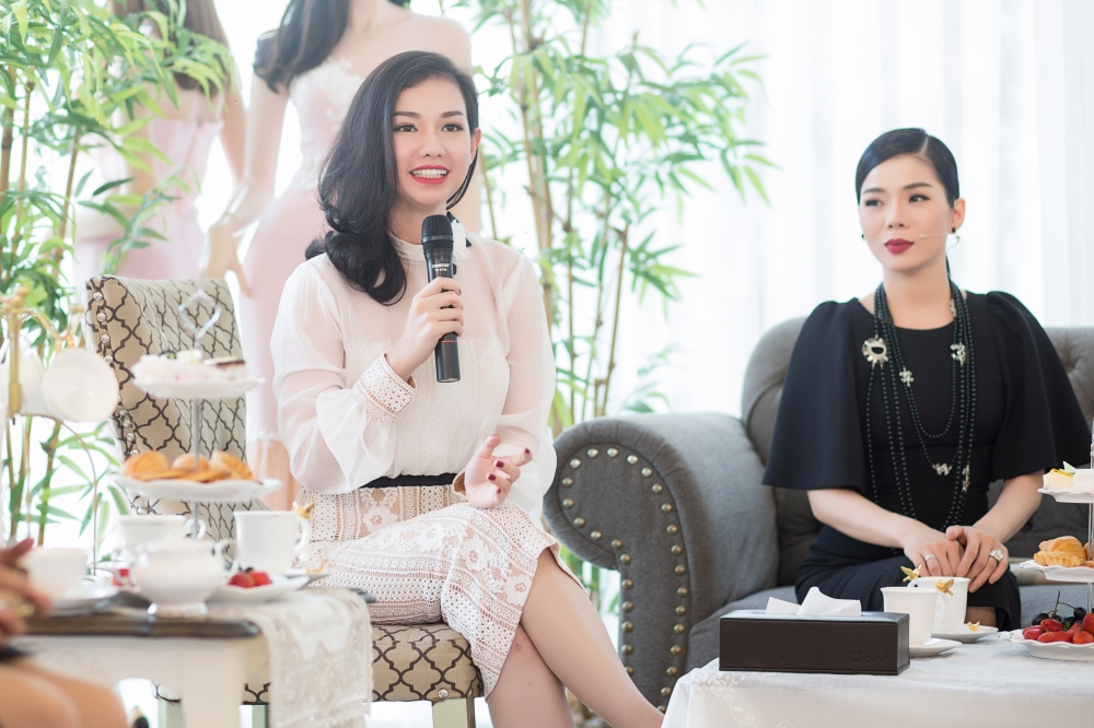 Trong hơn một tiếng đồng hồ, hai người đẹp đã có những chia sẻ thân mật, vui vẻ về bí quyết chăm sóc và bảo vệ da, giữ gìn vóc dáng sau khi sinh em bé.