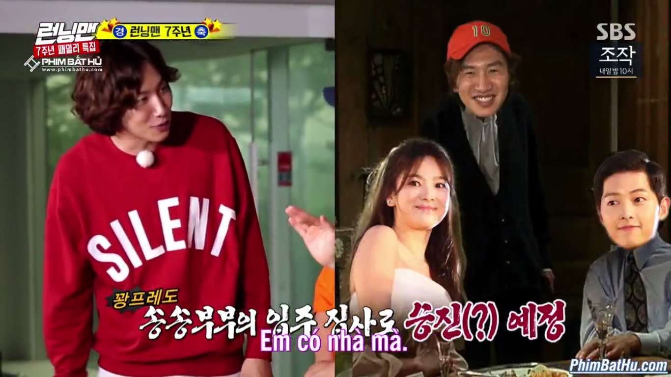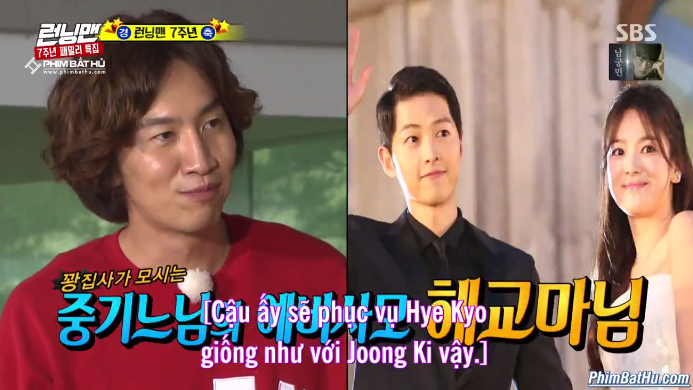Trong lúc đang vui vẻ, Jong Kook đột nhiên nổi hứng trêu ghẹo Kwang Soo khi lấy cớ “chúc mừng” anh nhưng thực chất là cố tình nhắc lại chuyển 2 người em Song Joong Ki và Song Hye Kyo đều đã “bỏ anh mà trờ thành một cặp”.