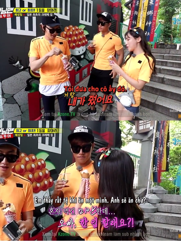 Trong tập mới nhất của Running Man tại Nhật Bản, cặp đôi anh em Hổ - Hươu đã một lần nữa bất hòa khi cô gái Kwang Soo theo đuổi chỉ nói chuyện và cười đùa với Kookie. Còn nhớ lần trước tại Nga anh chàng đã hóa điên khi nhìn cô của mình vui vẻ chơi cùng Hổ ca. Lần này mọi chuyện khởi đầu có vẻ suôn sẻ với Kwang Soo khi cô nàng cũng thích anh, với những cái nắm tay và ôm từ phía sau ngọt ngào.