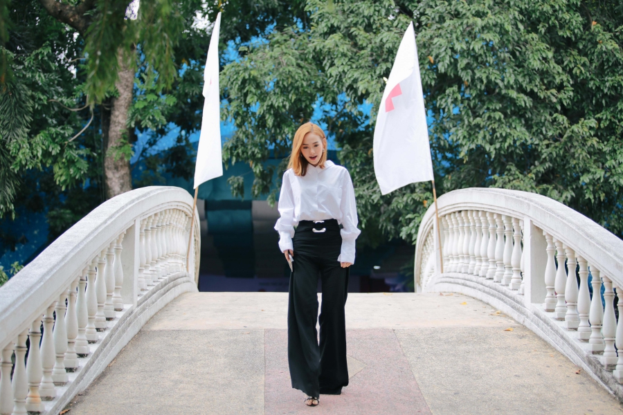 Người đẹp diện trang phục đơn giản, nhã nhặn nhưng vẫn toát lên vẻ rạng rỡ.