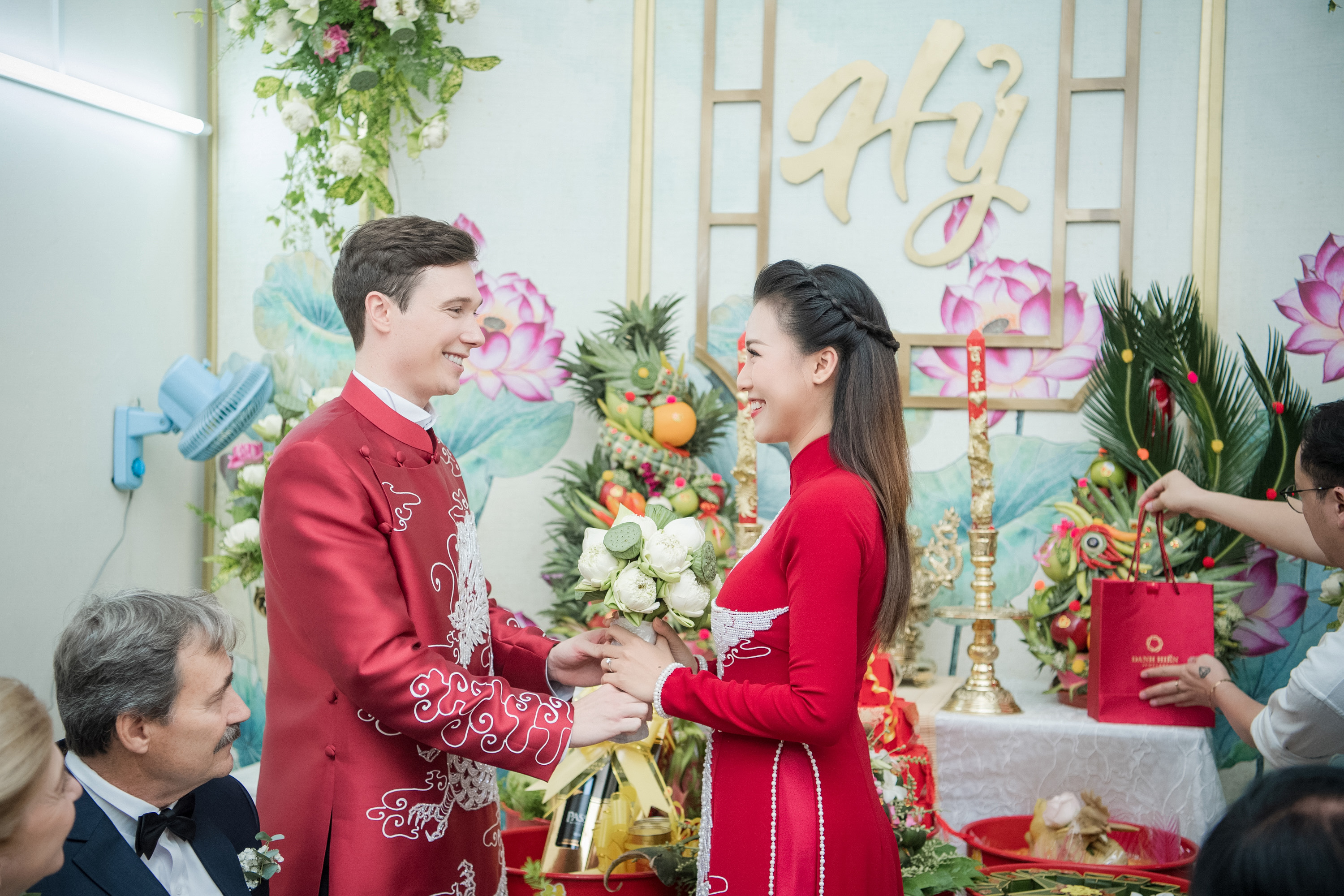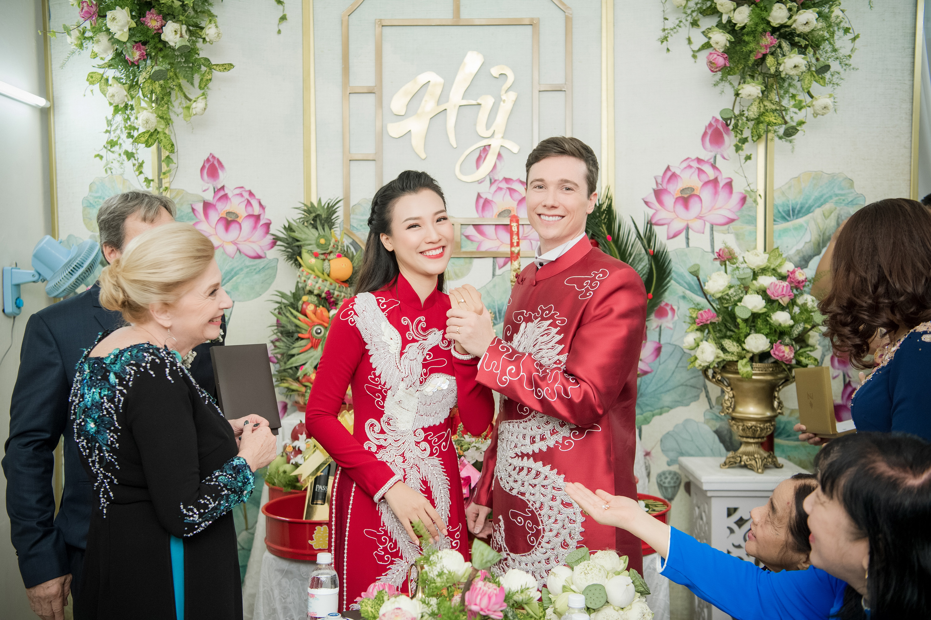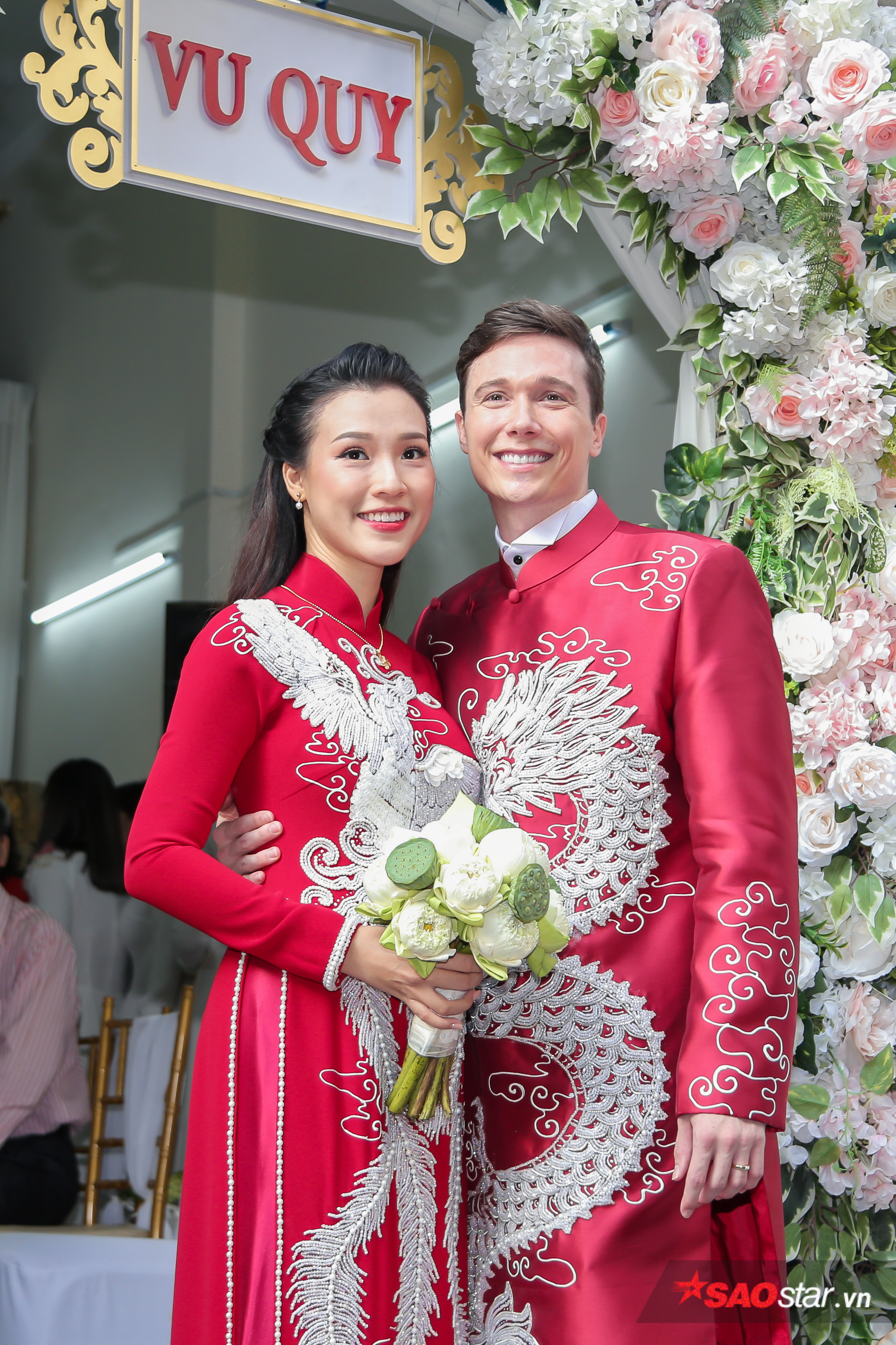 Jack Cole và Hoàng Oanh hạnh phúc rạng ngời trong lễ Vu quy sáng nay.