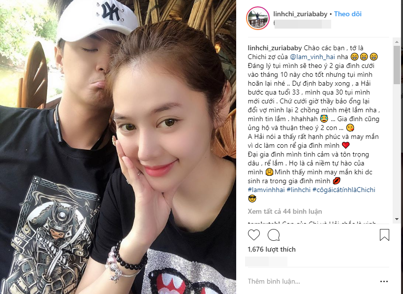 Không những thế, Linh Chi còn tiết lộ rằng Lâm Vinh Hải chia sẻ rằng cảm thấy rất hạnh phúc và may mắn khi được làm con rể của bố mẹ cô nàng. Khi được một fan hỏi rằng đã có baby chưa, nữ người mẫu của chúng ta tự tin chia sẻ thêm rằng “cuối năm nay nhé”.