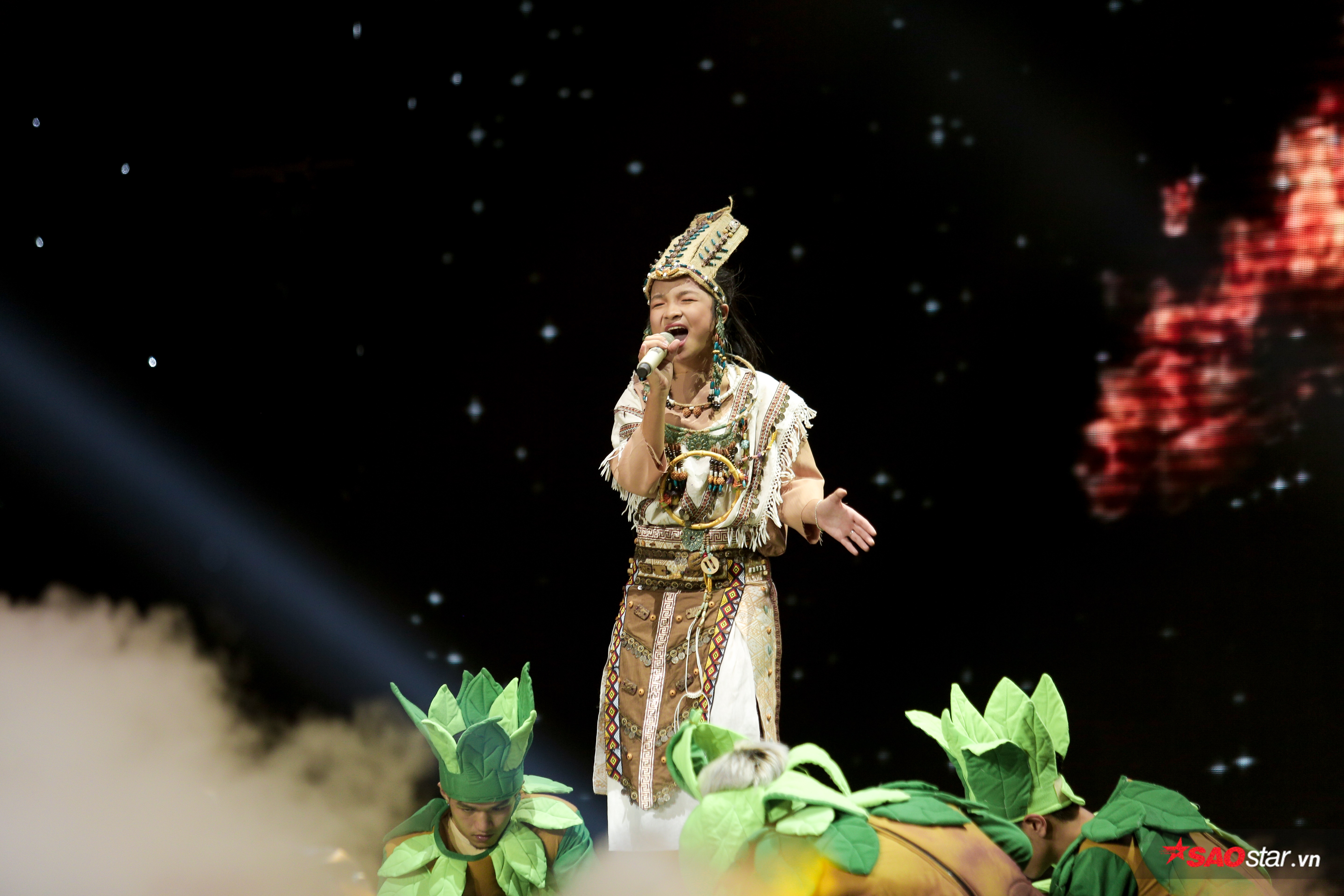 Trước phần biểu diễn của Thanh Hằng thì chính là màn kén rể của vua Hùng cho con gái Mị lớn với những sinh lễ toàn thuộc về rừng xanh như: Voi chín ngà, gà chín cựa, ngựa chín hồng mao. Những phẩm vật đó tượng trưng cho muôn loài sống giữa môi trường rừng, điều mà đội Giang - Hồ muốn ám chỉ ở đây chính là nếu săn bắt những loài vật đó thì môi trường rừng sẽ bị phá hoại.
